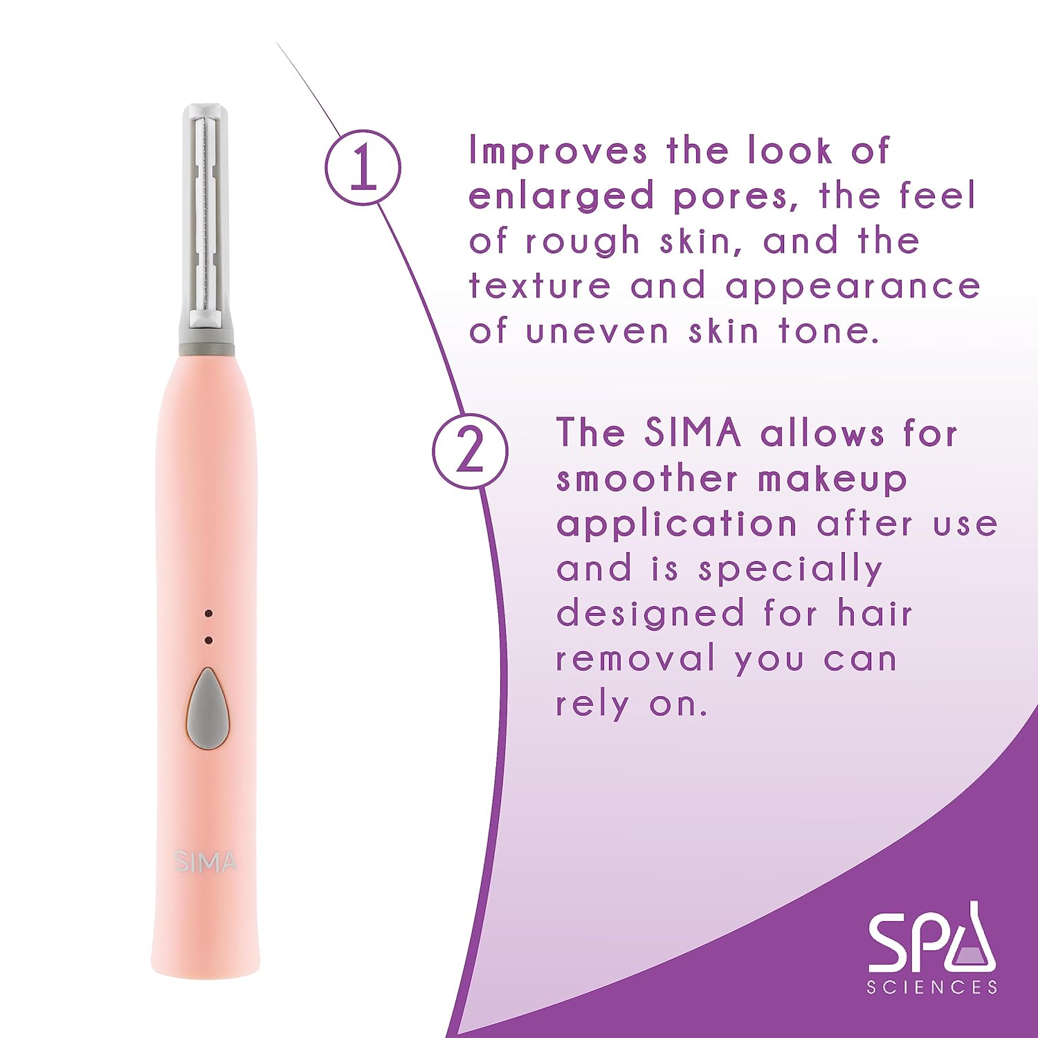 Spa Sciences - SIMA Dermaplaning Tool - Patented Painless 2 in 1 Facial Exfoliation & Peach Fuzz-Hair Removal System w/ 14 Weeks Treatment Included - Anti-Aging β 3 Speeds - Rechargeable