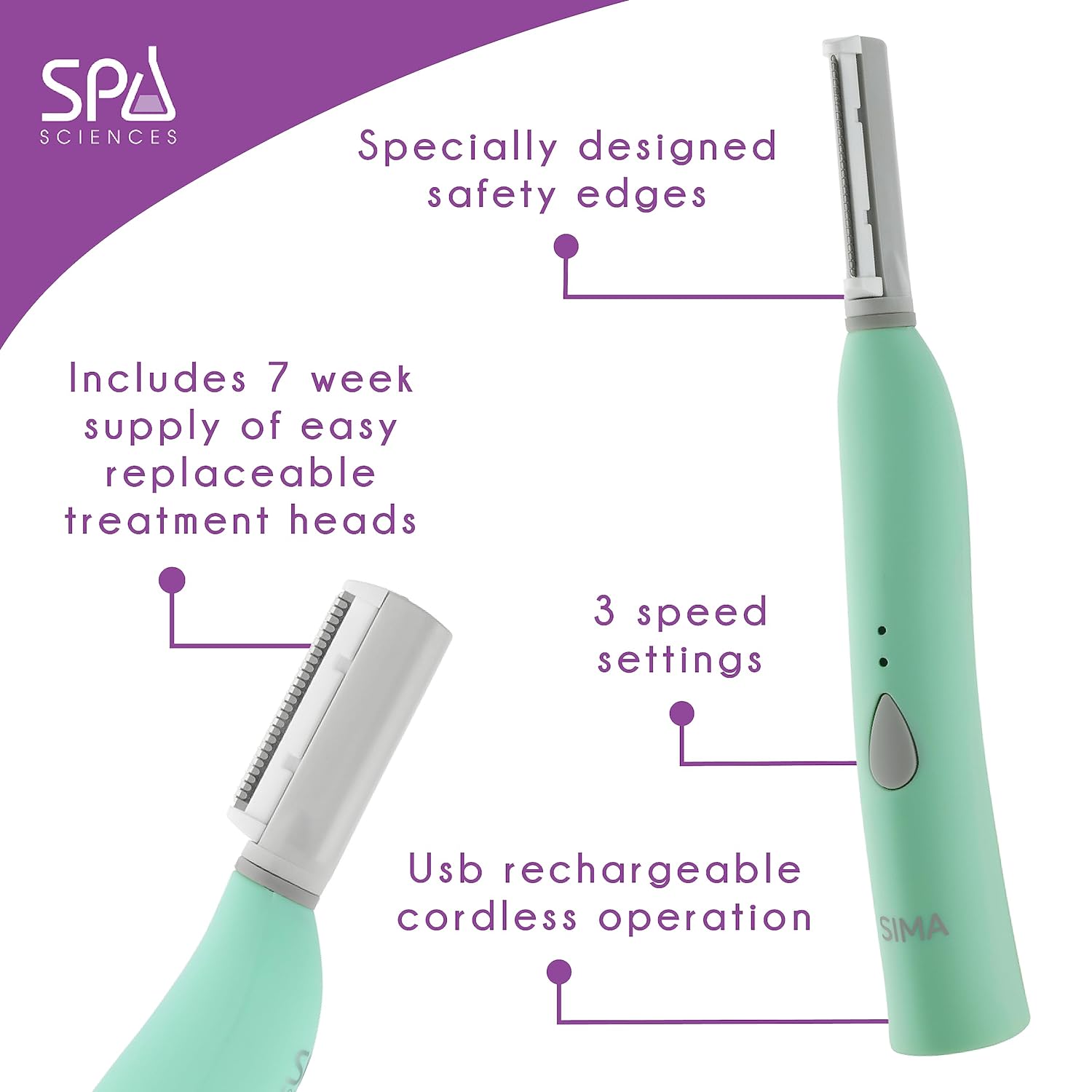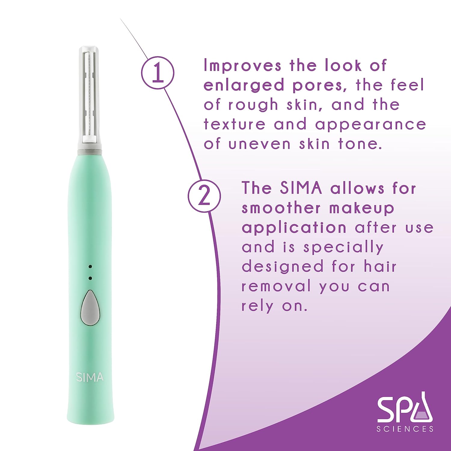 ABOUT THE PRODUCT: 1 > ELECTRIC DERMAPLANING TOOL β Quickly and easily remove unwanted facial hair while exfoliating with our SIMA Dermaplaning Tool. This facial hair remover rejuvenates skin and allows for painless peach fuzz removal 2 > PAINLESS FACIAL HAIR REMOVAL β SIMA features speeds of 250+ beats per second to remove unwanted facial hair, and improve the look of enlarged pores and the feel of rough skin. This hair trimmer effectively improves the appearance of uneven skin tone, fine lines, and wrinkles 3 > ADJUSTABLE EXFOLIATION SETTING β Our dermaplaning tool features 3 powerful speed settings so that you can personalize your exfoliation session. Low, medium, and high speeds are available to help you achieve your most radiant, smoothest complexion yet!SPA SCIENCES - SIMA Dermaplaning Tool - Patented Painless 2 in 1 Facial Exfoliation & Peach Fuzz-Hair Removal System w/ 7 Weeks Treatment Included - Anti-Aging β 3 Speeds - Rechargeable