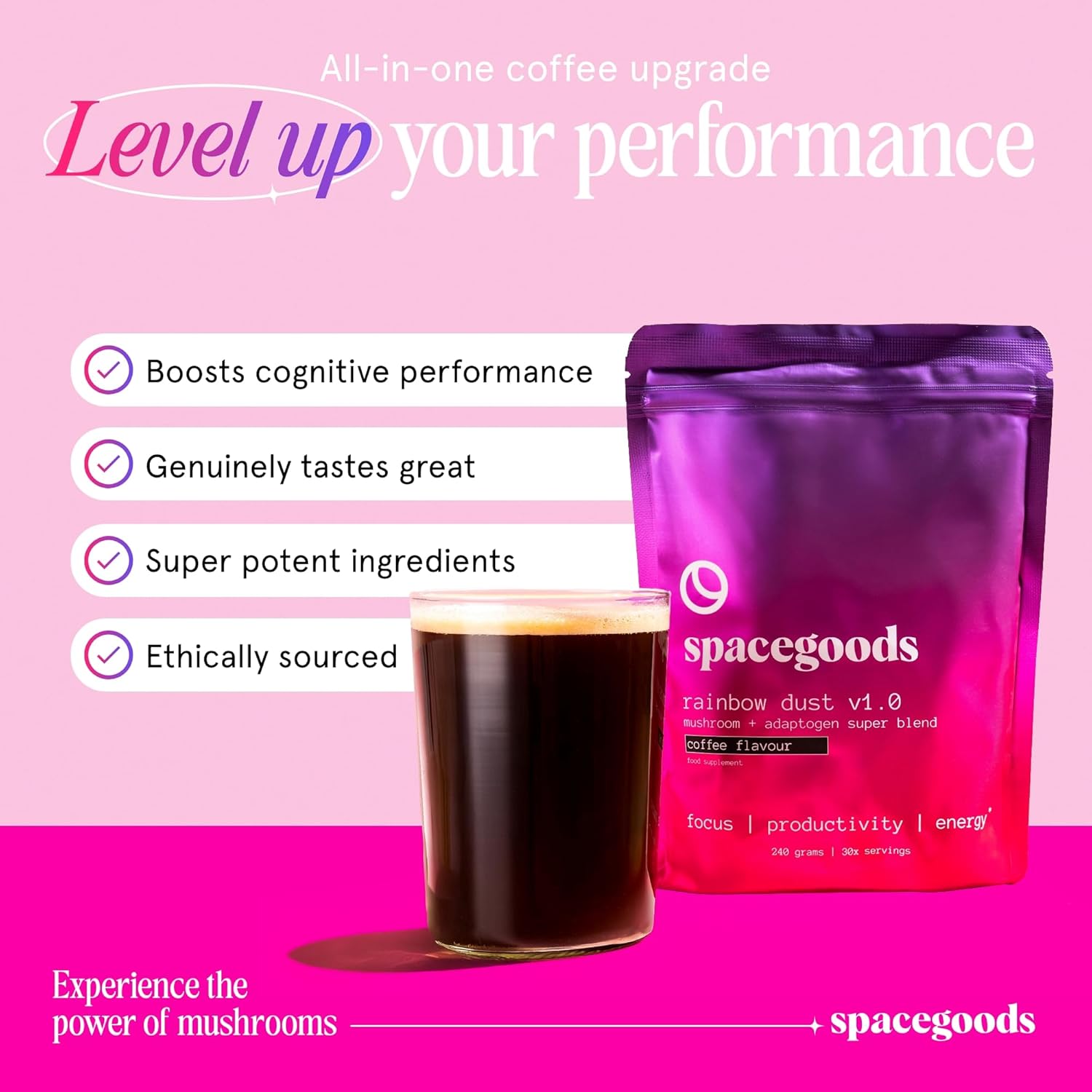 Spacegoods Rainbow Dust 6 Pack 240G | 180 Days Supply | Flavoured Mushroom Coffee | 120Mg Of Natural Caffeine | Lions Mane, Chaga Ashwagandha & Vitamin B5| Sharper Focus, Energy & Calm | Coffee
