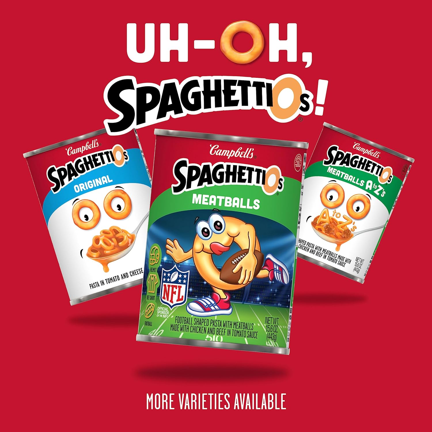 Spaghettios Football Shaped Canned Pasta With Meatballs, 15.6 Oz Can (Pack Of 12)