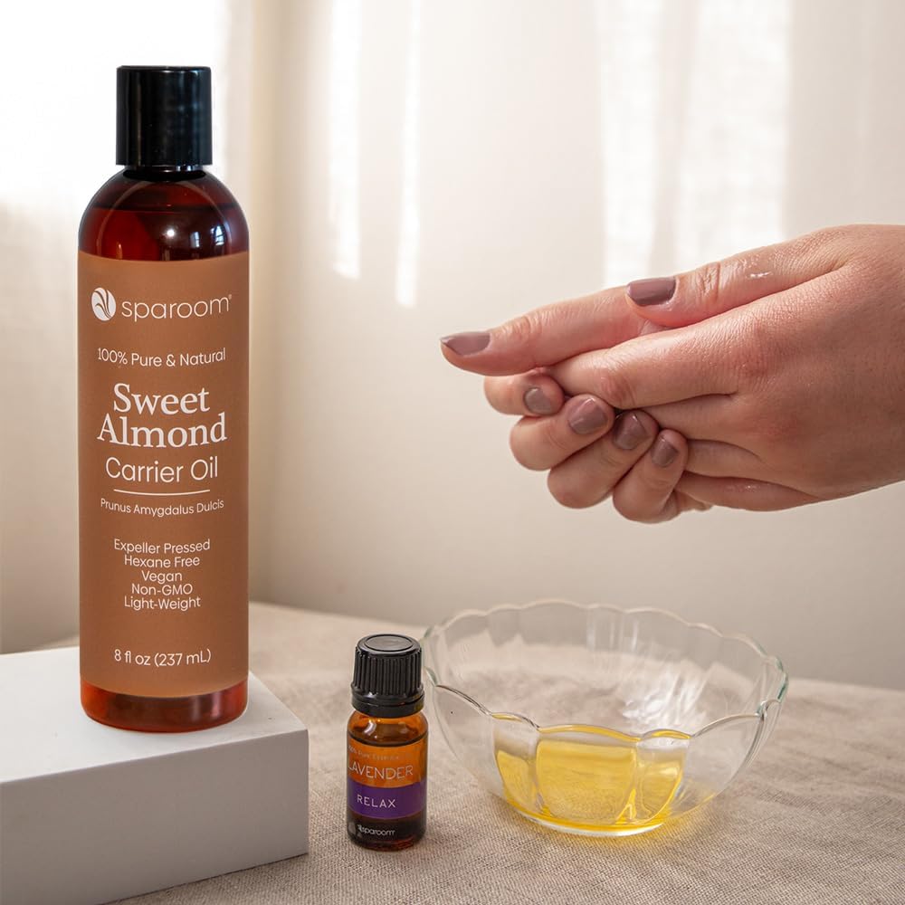Sparoom 100% Pure And Natural Carrier Oil, Hair And Skin Moisturizer, Aromatherapy And Massage Oil Base For Essential Oils, 8 Ounces, Sweet Almond Oil