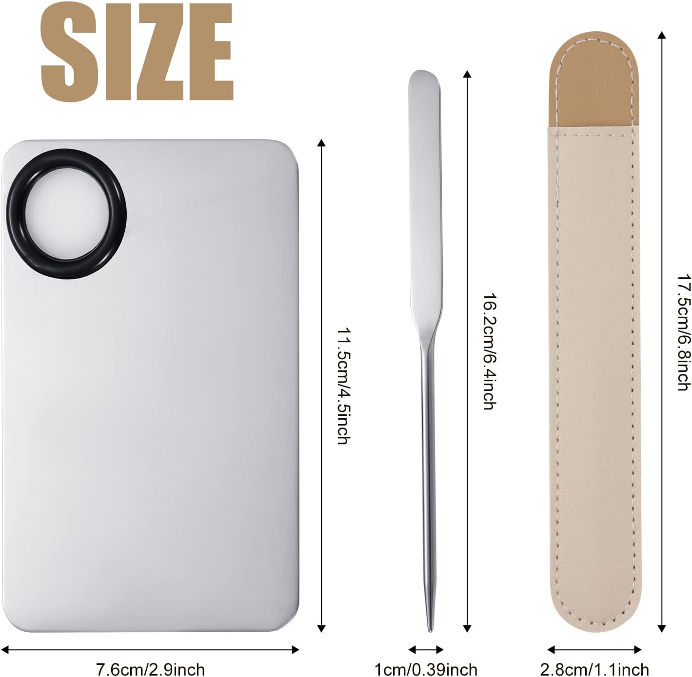 ABOUT THE PRODUCT: 1 > Package Content: You will receive a set of spatula makeup tool, including a spatula makeup measured 6.4x0.39inch/16.2x1cm, a stainless steel mixing measured 2.9x4.5inch/7.6x11.5cm, a spatula storage bag, lightweight and stylish, meeting your daily makeup 2 > Premium Material: Our metal makeup spatula tool are made of high quality stainless steel, smooth and durable, easy to clean. You can use them with a confidence for a long time 3 > Easy to Use: Our stainless steel mixing palette has a positioning hole that can be fixed with your fingers, and the ergonomically designed non-slip scraper is comfortable to hold, not heavy, you can feel relax when you make upSpecification : Color: silver Material: stainless steel Product Size: as shown in the detail picture Package details : 1 x spatula makeup korean 1 x stainless steel mixing 1 x spatula storage bag Note: Due to manual measurement, the size and weight may have a certain error. Due to the difference between different monitors, there may be a slight color difference existed