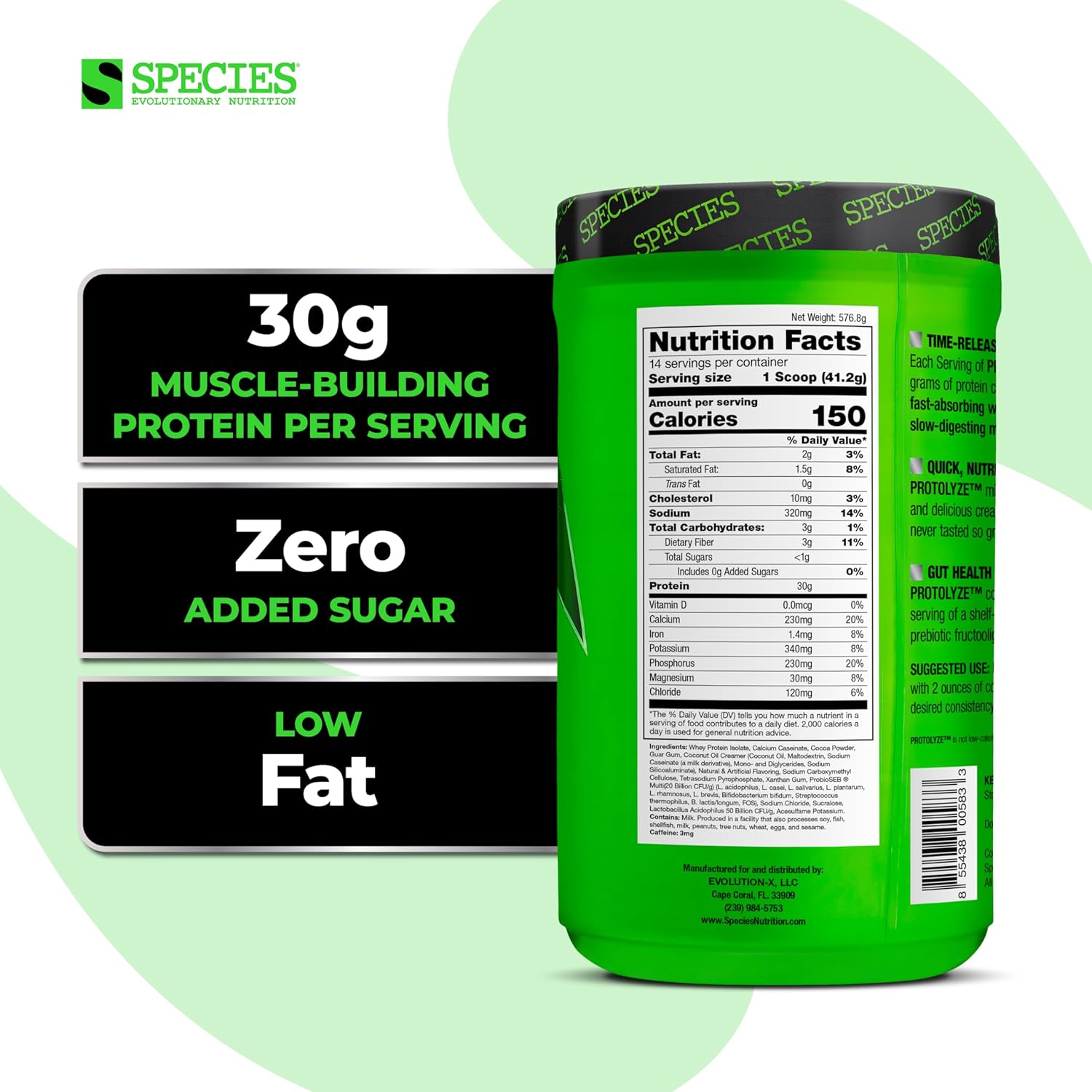 About this item PROTEIN PACKED SWEET TREAT. Protolyze is a precision engineered time-release protein pudding. 30 grams of easily digestible protein comes from a combination of fast-absorbing whey protein isolate and slow-digesting micellar casein. Nutritious eating never tasted so great! TIME-RELEASE TECHNOLOGY. Micellar casein not only thickens this protein delicacy to turn it into a delicious thick pudding; it also slows the absorption of the mix making it a true time released protein. 30G OF PROTEIN PER SERVING. Each serving of Protolyze protein pudding has a whopping 30 grams of protein. With only 2 grams of fat and carbs, and no added sugar, one single serving will help your body recover from hard gym workouts while keeping your appetite to a minimum. QUICK & NUTRITIOUS. Protolyze is a quick snack that can be used pre- or post-workout to keep energy levels up. Protolyze mixes quickly to form a thick and delicious creamy pudding that can contribute vital nutrients to your workout and recovery. TAKE IT FROM THE MASTER. Dave Palumbo, Founder & President of Species Nutrition is an decorated bodybuilder with over 30 years of experience in the fitness and supplement industries. Dave competed for 15 years on the National Physique Committee (NPC) national bodybuilding circuit, gaining notoriety for his relentless pursuit of health & fitness. See more product details,PROTEIN PACKED SWEET TREAT. Protolyze is a precision engineered time-release protein pudding. 30 grams of easily digestible protein comes from a combination of fast-absorbing whey protein isolate and slow-digesting micellar casein. Nutritious eating never tasted so great!,TIME-RELEASE TECHNOLOGY. Micellar casein not only thickens this protein delicacy to turn it into a delicious thick pudding; it also slows the absorption of the mix making it a true time released protein,30G OF PROTEIN PER SERVING. Each serving of Protolyze protein pudding has a whopping 30 grams of protein. With only 2 grams of fat and carbs, and no added sugar, one single serving will help your body recover from hard gym workouts while keeping your appetite to a minimum,QUICK & NUTRITIOUS. Protolyze is a quick snack that can be used pre- or post-workout to keep energy levels up. Protolyze mixes quickly to form a thick and delicious creamy pudding that can contribute vital nutrients to your workout and recovery,TAKE IT FROM THE MASTER. Dave Palumbo, Founder & President of Species Nutrition is an decorated bodybuilder with over 30 years of experience in the fitness and supplement industries. Dave competed for 15 years on the National Physique Committee (NPC) national bodybuilding circuit, gaining notoriety for his relentless pursuit of health & fitness