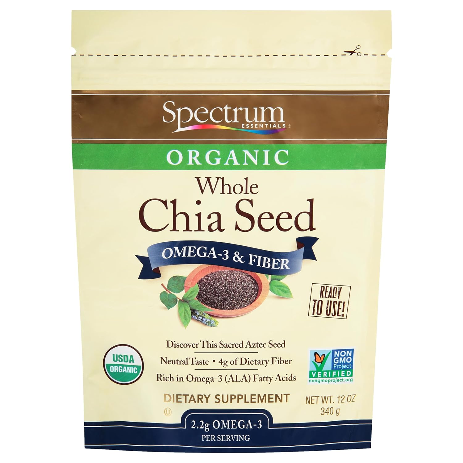 Spectrum Essentials Organic Whole Chia Seeds are a super nutritional powerhouse, with Omega-3 fatty acids and fiber to support heart health and digestive balance.* With 4g of dietary fiber per serving, our chia seeds are Certified gluten-free, Non-GMO Project Verified, and a simple way to supplement your diet. Add it to your favorite shakes and smoothies, or mix it into pancakes, waffles and other baked goods. Includes one 12 oz. bag of Spectrum Essentials Organic Whole Chia Seeds. Spectrum brand offers a premium line of organic culinary oils, vinegars, condiments and supplements made with high quality ingredients sourced from all over the world. Expertly crafted for 30 years and honestly labeled, our brand is committed to your wellness lifestyle. *These statements have not been evaluated by the Food and Drug Administration. The product is not intended to diagnose, treat, cure or prevent any diseases. †Contains 2.2g of ALA per serving which is 138% of the 1.6g daily value for ALA