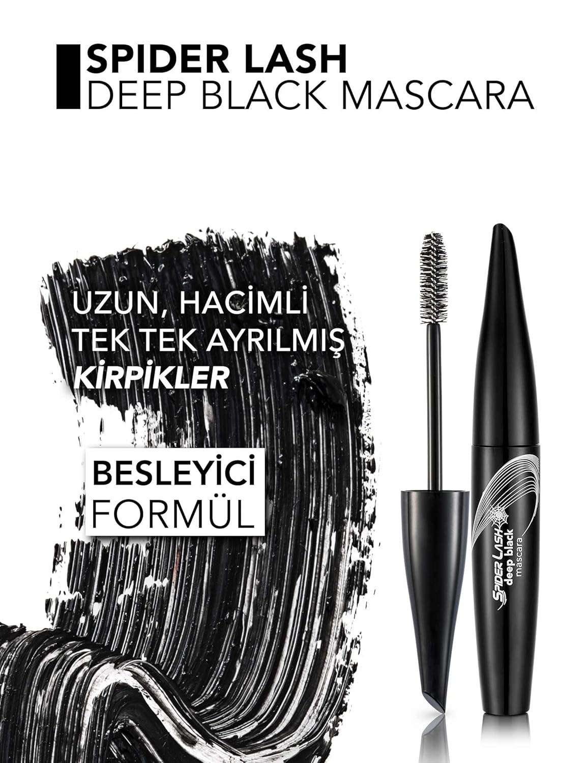 The extra deep black,creamy formula of Spider Lash Deep Black Mascara glides on effortlessly and adheres to lashes to make them look noticeably denser and more voluminous