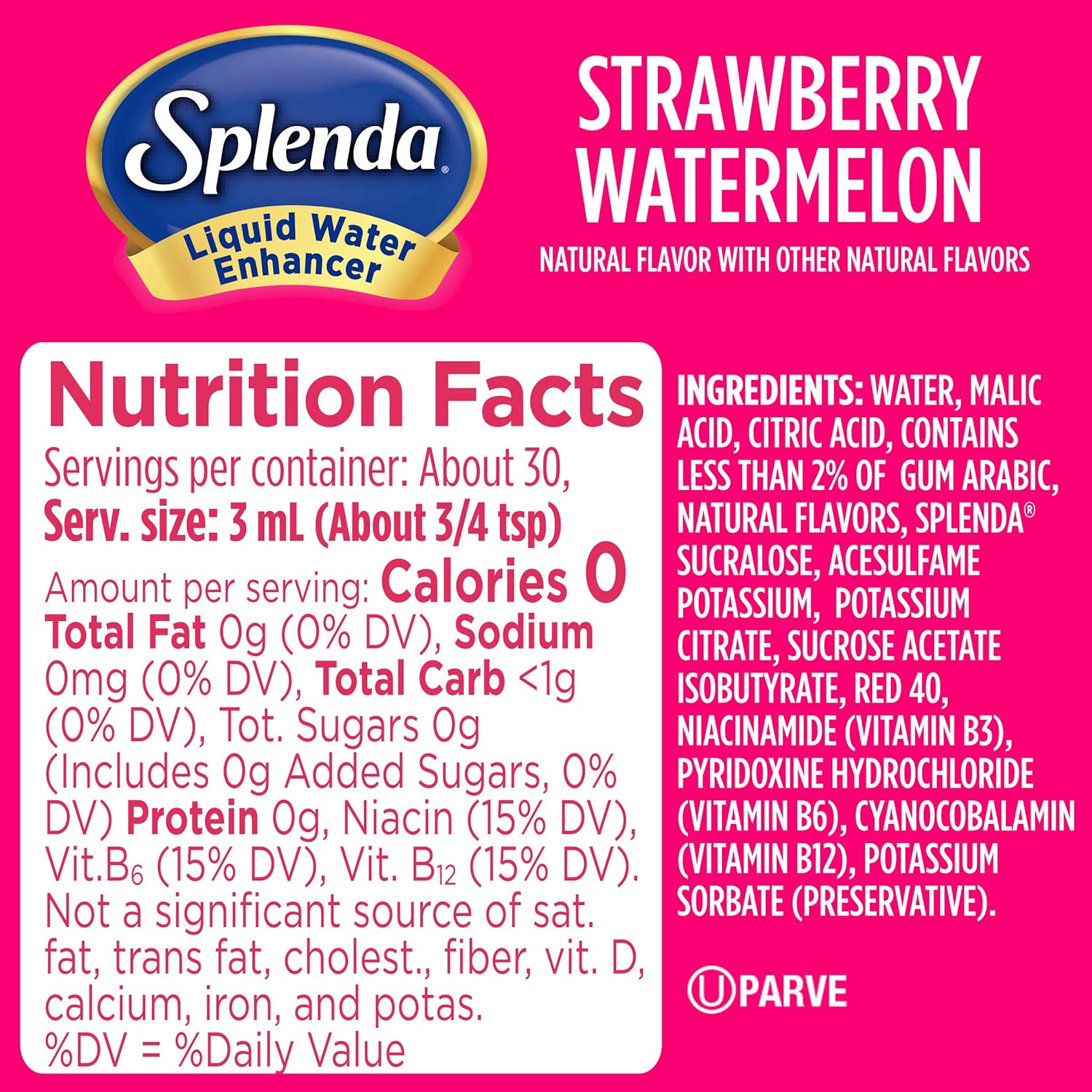 30 Servings Per Bottle - 1 Bottle Of Splenda Strawberry Watermelon Liquid Water Enhancer Makes About 30 - 12 Fl. Oz Servings