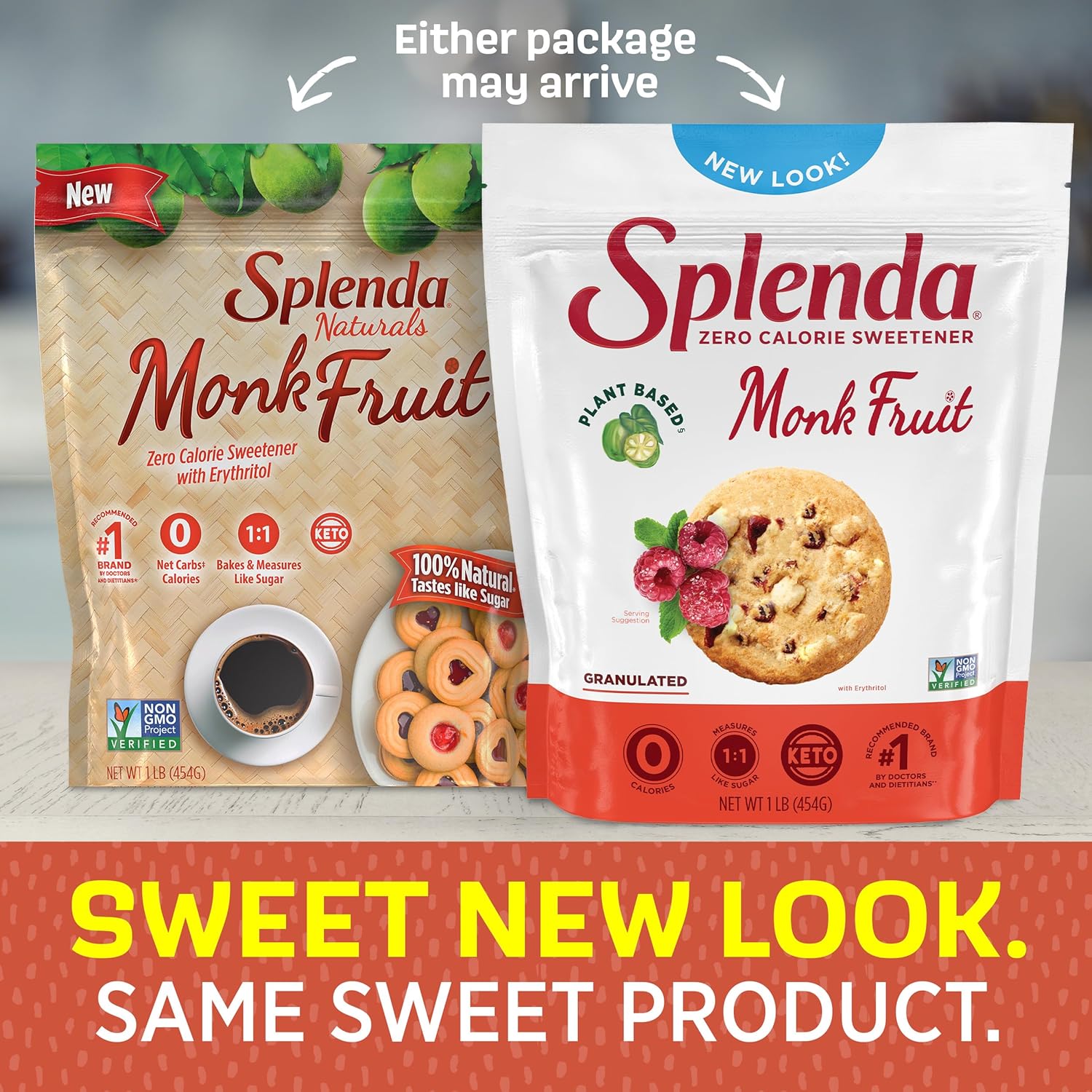 Splenda Monk Fruit Zero Calorie Plant Based Granulated Sweetener, 1 Pound Resealable Bag