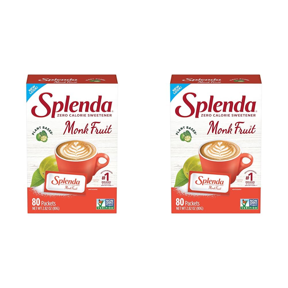 SPLENDA Monk Fruit Zero Calorie Plant Based Sweetener Substitute, Keto Sugar Alternative (80 Count) (Pack of 2)