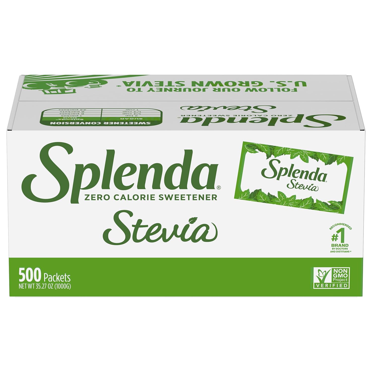 Splenda Stevia Zero Calorie Sweetener, Plant Based Sugar Substitute Granulated Powder, Single Serve Packets, 500 Count (Pack Of 1)