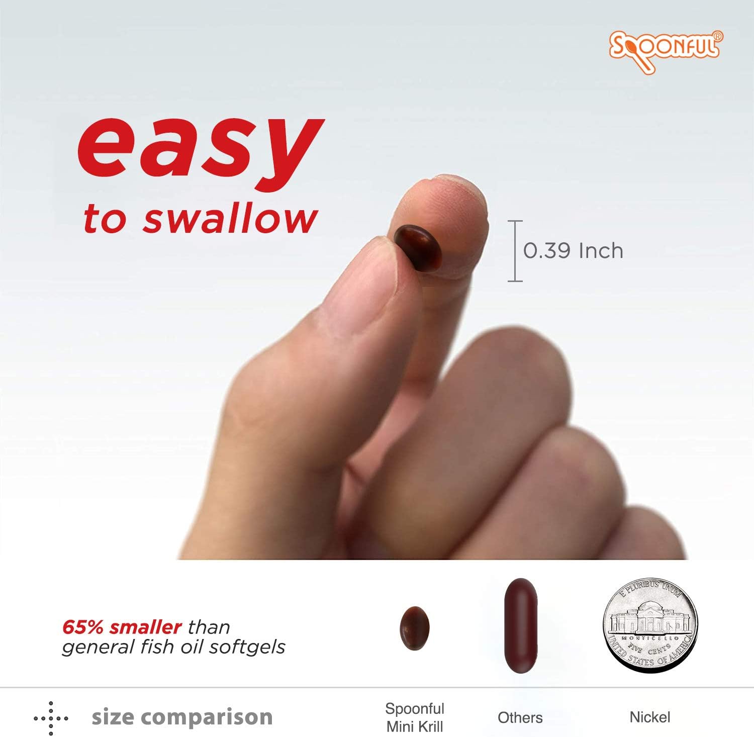 Spoonful Mini Krill Oil, 375Mg 130 Servings, Easy To Swallow Mini Capsults For Omen And Seniors, Omega-3 Dha Epa Astaxanthin And Essential Phospholipids, Made In Usa