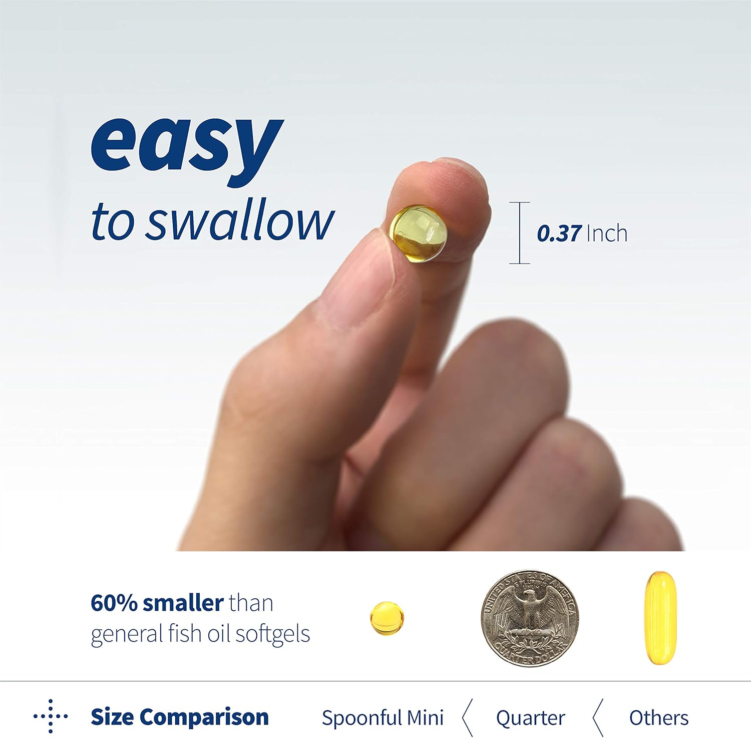 Spoonful Mini Omega 3 Fish Oil, Ifos Certified, 1290 Mg Per Serving, 120 Softgels Pearls, Small Size Easy To Swallow Capsules For Women And Seniors, Made In Usa