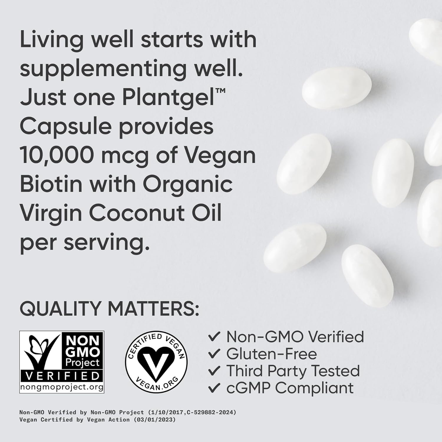 Sports Research Extra Strength Vegan Biotin (Vitamin B) Supplement With Organic Coconut Oil - Supports Keratin For Healthier Hair & Skin - Great For Women & Men - 2,500Mcg, 120 Veggie Softgel Capsules