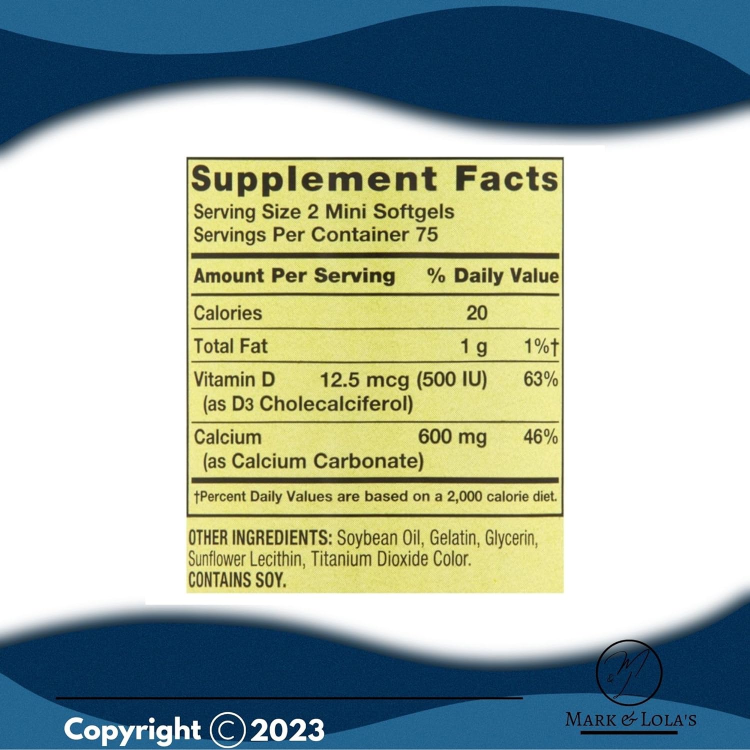 Spring Valley Calcium 600Mg With Vitamin D3 12.5Mcg Mini Softgels, 150 Ct (1 Pack), Bundle With Exclusive Let'S Build St