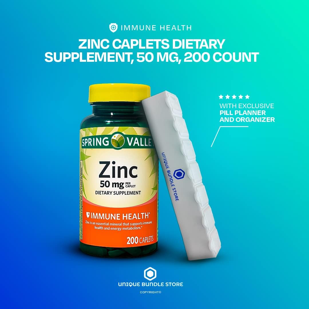 DESCRIPTION : Spring Valley, Zinc 50mg, Zinc Caplets Dietary Supplement, Zinc Supplements, 200 Count + 7 Day Pill Organizer Included