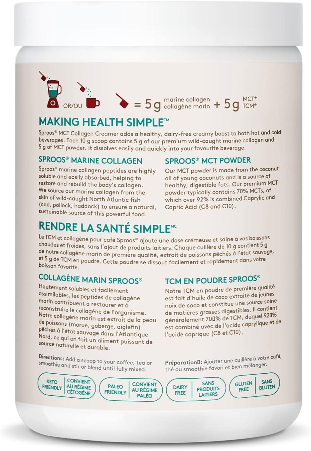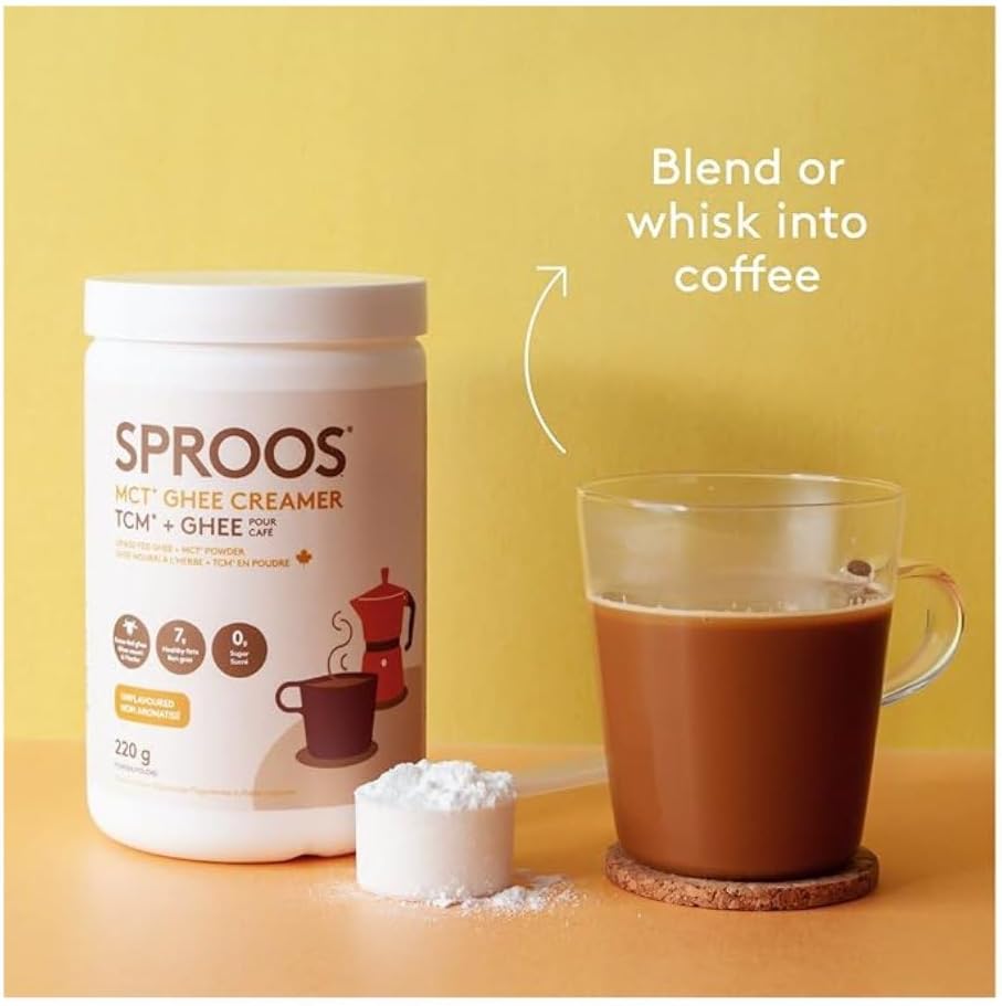 Sproos Keto Creamer Beverage Mct Powder, Coconut Oil, Grass-Fed Butter & Organic Ghee-Healthy Fats, Optimal Brain Health Creamy, Buttery Flavour-Sugar Free-22-Day Supply, White, 220 G