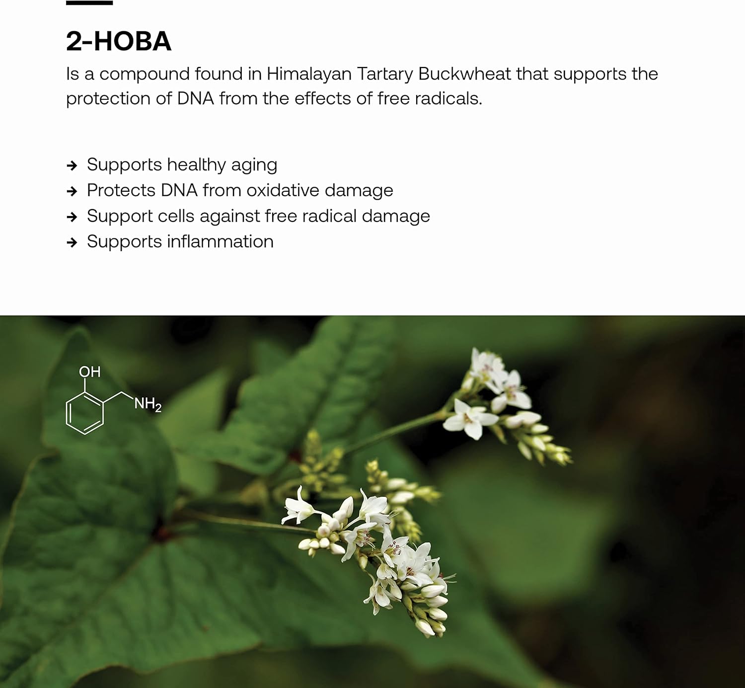 About this item SUPPORTS HEALTHY AGING: Rather than taking massive doses of antioxidants which can interfere with the health of free radical signalling mechanisms, 2-HOBA is an alternative that supports healthy levels of free radical signaling and supports cells that may be exposed to oxidative stress. PATENTED INGREDIENTS: SRW is one of only two companies worldwide with access to Hobamine, and is the only product that delivers 2-HOBA within a delayed release capsule (supporting absorption and protecting against stomach acid). 2-HOBA is a molecule derived from Himalayan Tartary Buckwheat, but has only recently been discovered for use in dietary supplements. SCIENTIST-FORMULATED: 2-HOBA was formulated by Dr Naji Abumrad, a world-renowned leader in the medical industry with over four decades of experience as a scientist and a surgeon. He has collaborated with the founders of Hobamine to study its health benefits related to aging, resulting in several issued patents. GOOD FOR THE PLANET: Our unique aluminium canister keeps your supplements fresh, and is readily recyclable. Our boxes are made from sustainably sourced, FSC-certified card. SRW LABORATORIES: We curate the very latest in science and research to formulate premium pharmaceuticals that support your cellular health, especially as you age. Working with our Science Advisory Board, we have built a range to assist with healthy aging by addressing the roots of aging at the core. See more product details,SUPPORTS HEALTHY AGING: Rather than taking massive doses of antioxidants which can interfere with the health of free radical signalling mechanisms, 2-HOBA is an alternative that supports healthy levels of free radical signaling and supports cells that may be exposed to oxidative stress,PATENTED INGREDIENTS: SRW is one of only two companies worldwide with access to Hobamine, and is the only product that delivers 2-HOBA within a delayed release capsule (supporting absorption and protecting against stomach acid). 2-HOBA is a molecule derived from Himalayan Tartary Buckwheat, but has only recently been discovered for use in dietary supplements,SCIENTIST-FORMULATED: 2-HOBA was formulated by Dr Naji Abumrad, a world-renowned leader in the medical industry with over four decades of experience as a scientist and a surgeon. He has collaborated with the founders of Hobamine to study its health benefits related to aging, resulting in several issued patents,GOOD FOR THE PLANET: Our unique aluminium canister keeps your supplements fresh, and is readily recyclable. Our boxes are made from sustainably sourced, FSC-certified card,SRW LABORATORIES: We curate the very latest in science and research to formulate premium pharmaceuticals that support your cellular health, especially as you age. Working with our Science Advisory Board, we have built a range to assist with healthy aging by addressing the roots of aging at the core