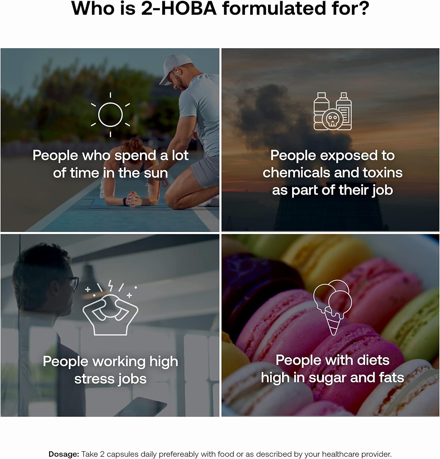 SUPPORTS HEALTHY AGING: Rather than taking massive doses of antioxidants which can interfere with the health of free radical signalling mechanisms, 2-HOBA is an alternative that supports healthy levels of free radical signaling and supports cells that may be exposed to oxidative stress