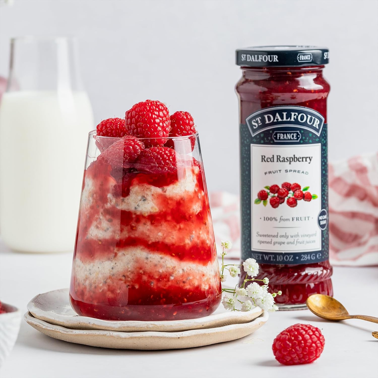Indulge in the diverse and vibrant flavors of St. Dalfour with this premium bundle, featuring Fig Royale and Orange Marmalade in convenient mini jars, alongside the rich Red Raspberry and tropical Mango & Passion Fruit in full-size jars. Made with 100% fruit, these spreads are crafted in France using traditional recipes, capturing the authentic taste and natural sweetness of ripe fruits. Free from synthetic nitrates, nitrites, cane sugars, and corn syrups, these spreads offer a wholesome and pure option for those who value quality ingredients. Whether you’re spreading them on toast, mixing into yogurt, or using them to enhance your favorite recipes, this bundle provides a delightful variety to elevate any meal. With jars perfect for favors or gifts and full-size jars for everyday enjoyment, this versatile selection ensures a rich and satisfying taste experience with every spoonful. Sealed for freshness, each jar delivers the true taste of French tradition and expertise,Fig Royale: Decadent figs with a clean finish and delightful texture. Pairs well with cheese, prosciutto and pears,Orange: Traditional orange marmalade with a superb flavor complete with a noticeable tartness. Pairs well with chocolate, gouda and homemade biscuits,Red Raspberry: Classic raspberry flavor with a noticeable tartness and sweet finish. Pairs well with French toast, ricotta and angel food cake,Mango & Passion Fruit: Luscious tropical aromas complete with a rich texture and tangy finish. Pairs well with coconut, panna cotta and vanilla ice cream,We use only 100% fruit with vineyard-ripened grape 'must' as a natural sweetener,Our spreads are made to preserve the delicious complexity and texture of the fruit, with no artificial additives, cane sugars or preservatives ever used