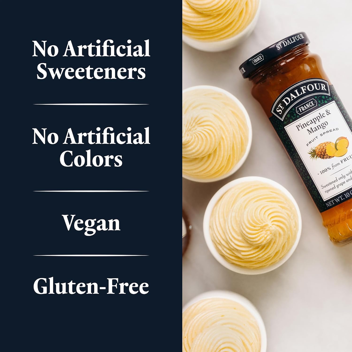 St. Dalfour Pineapple & Mango Fruit Spread - 10Oz - 100% From Fruit, No Artificial Ingredients, Non-Gmo, No Cane Sugars, All Natural, Made In France