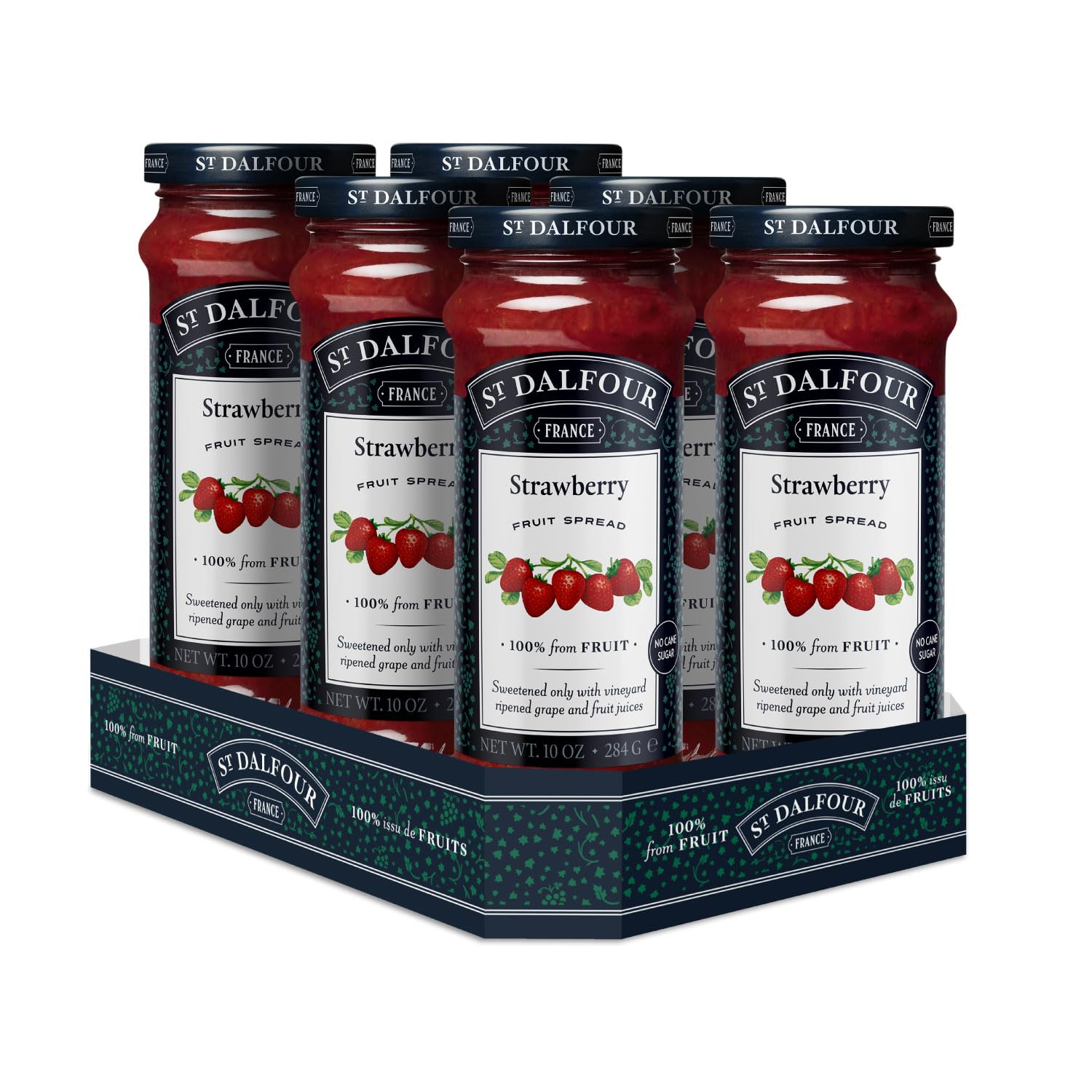 Savor the exceptional taste of St Dalfour Strawberry French Fruit Spread, meticulously crafted in France to deliver a rich, authentic flavor experience. Made with 100% fruit, this premium spread captures the vibrant essence of ripe strawberries, offering a naturally sweet and juicy delight in every bite. Free from synthetic nitrates or nitrites and without artificial additives, this spread is a pure and wholesome choice for those who appreciate the natural goodness of fruit. Sweetened solely with Fruit Juice Concentrates, it delivers a naturally indulgent sweetness without added sugars. Perfect for enhancing your favorite breakfast or dessert, it adds a gourmet touch to any meal. Sealed in a 10 oz jar to preserve its fresh, bold flavor, this spread ensures every spoonful is as delightful as the first. Elevate your culinary creations with the refined taste and quality of St Dalfour Strawberry French Fruit Spread, a true testament to French tradition and expertise,Classic Strawberry flavor with a velvety finish and rich texture. Pairs well with shortbread, cream cheese and champagne,Our artisanal recipe was created after the turn of the 19th century. We craft our fruit spreads south of Bordeaux, amid the renowned terroir dubbed āthe Garden of Franceā,We use only 100% fruit with vineyard-ripened grape 'must' as a natural sweetener,Our Mai?tre Confiturier uses only the finest ingredients, gently cooking carefully selected fruit and fruit juices in traditional kettles,Our spreads are made to preserve the delicious complexity and texture of the fruit, with no artificial additives, cane sugars or preservatives ever used