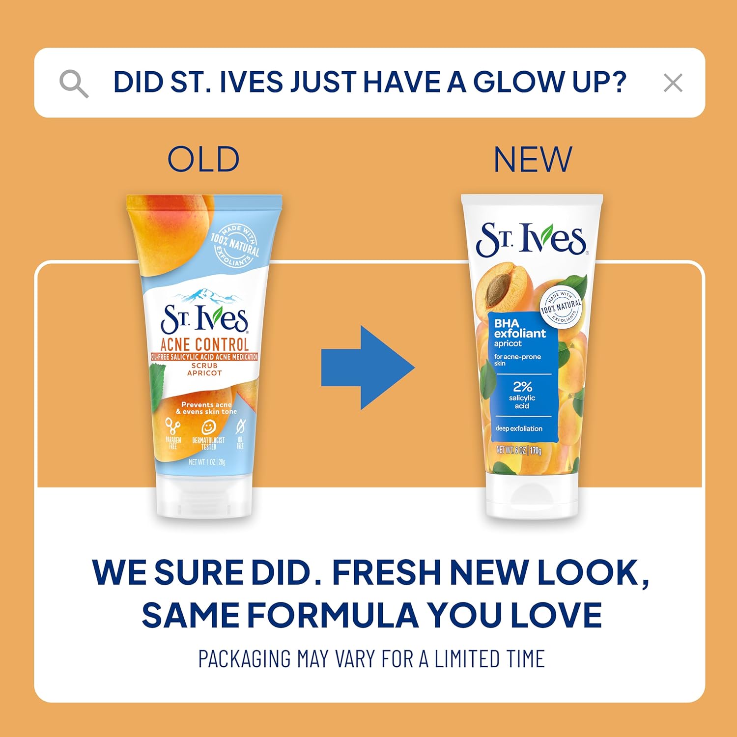 St. Ives Acne Control Face Scrub Apricot, Minimize Pores, Prevent Acne And Blemishes, With Salicylic Acid ,100% Natural Exfoliants, 6 Oz, Twin Pack