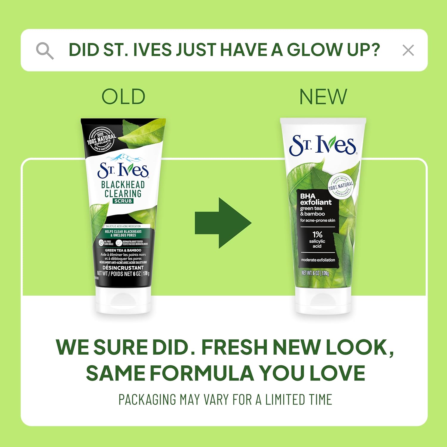 BYE-BYE BREAKOUTS: St. Ives Blackhead Clearing Face Scrub contains 1% salicylic acid, which helps clear skin of blackheads and acne