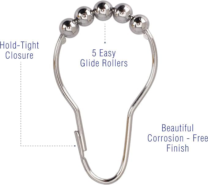 The roller ball design ensures the hooks slide effortlessly across any shower rod, preventing snagging and tearing of your curtain. With a sleek polished finish, they add a touch of elegance to your bathroom décor.