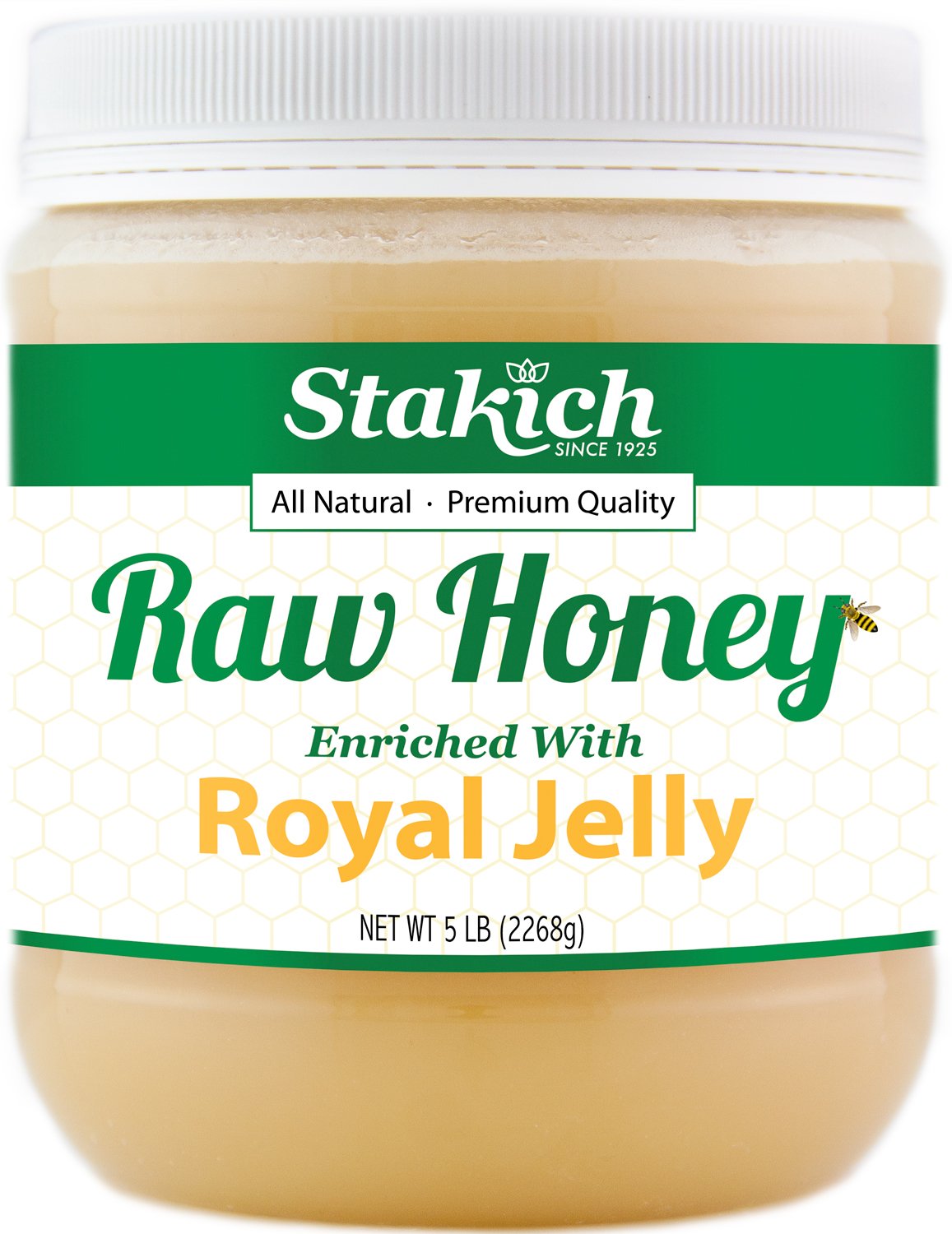Stakich Royal Jelly Enriched Raw Honey - Pure, Unprocessed, Unheated - 5 Pound (80 Ounce)