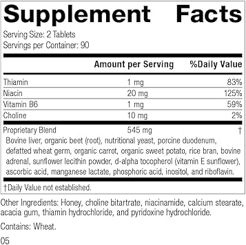 Standard Process Cataplex B - Whole Food Formula With Niacin, Vitamin B6, Thiamine, And Inositol For Heart Health, Metabolism, And Cholesterol Maintenance - 180 Tablets