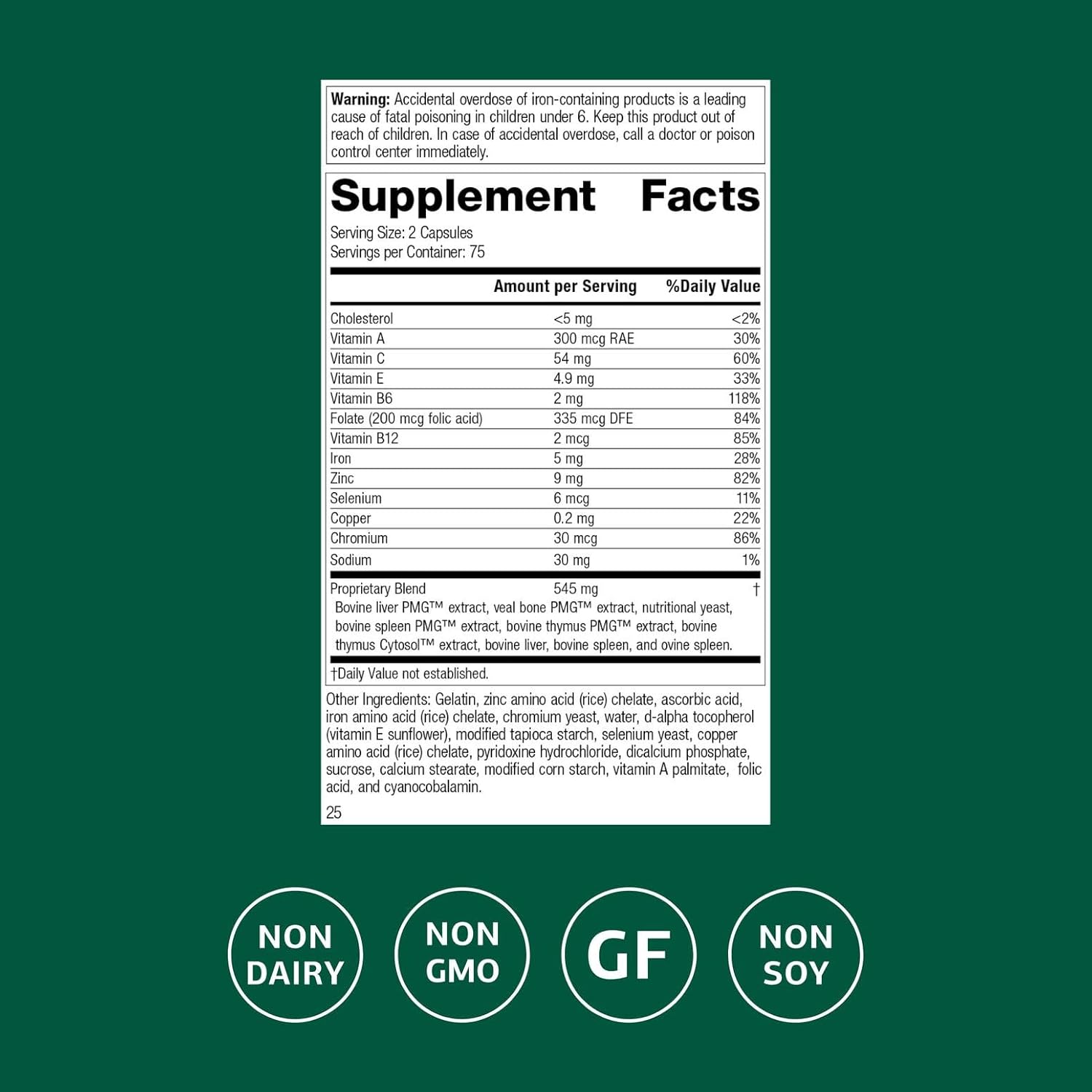 Immune Support with Essential Nutrients: Immuplex is an excellent source of zinc, iron, folate, and selenium; these ingredients aid healthy immune system response functions