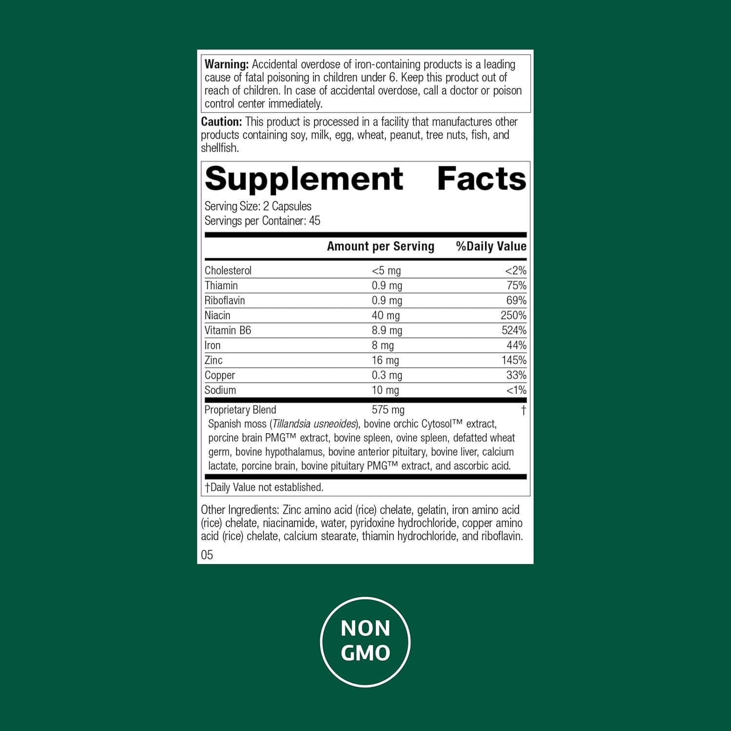 Contains a broad spectrum of vitamins, minerals, and complementary tissues to support endocrine organ function