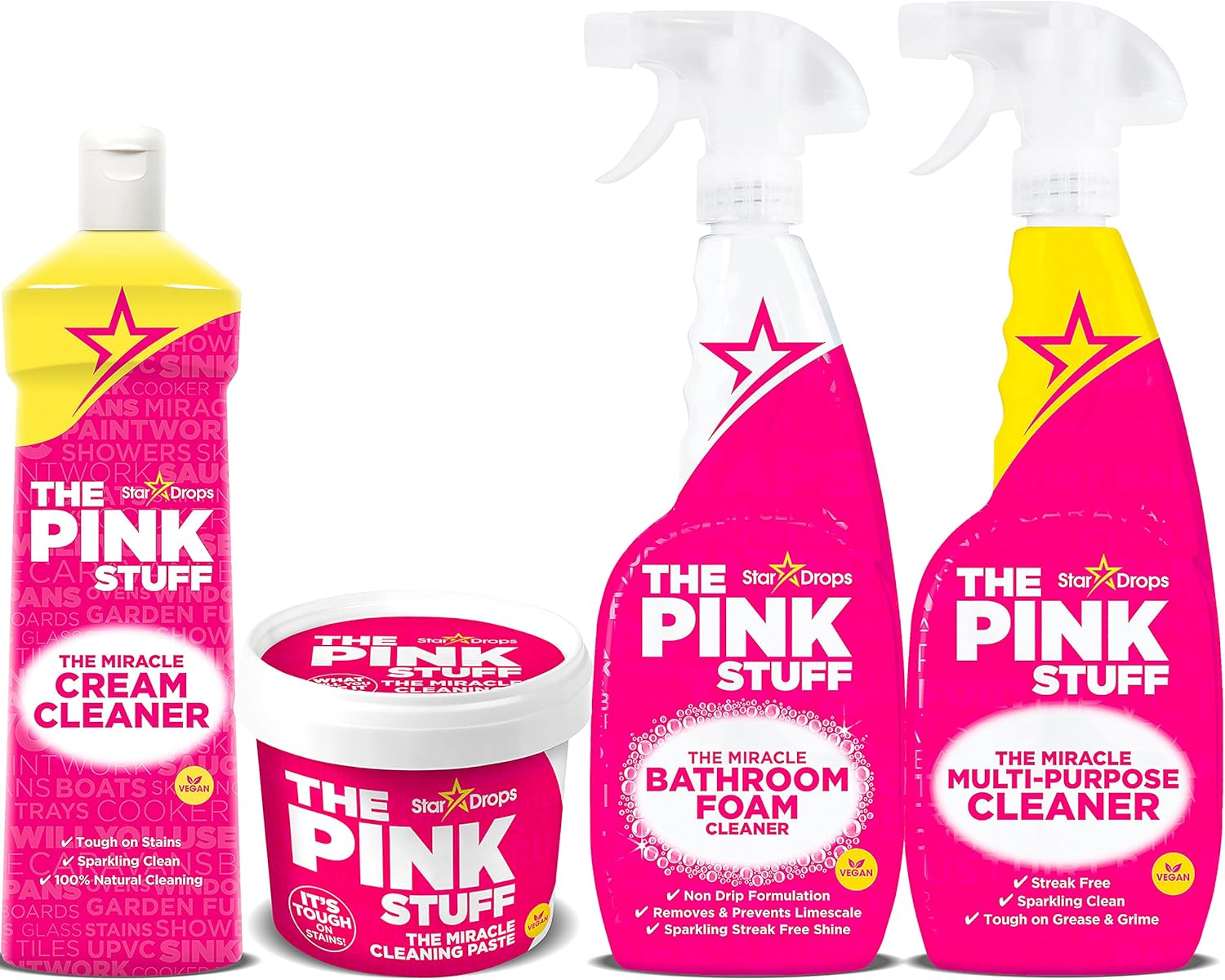 Stardrops - The Pink Stuff Ultimate Bundle - Miracle Cleaning Paste, Multi-Purpose Bathroom Spray And Foam Cleaner