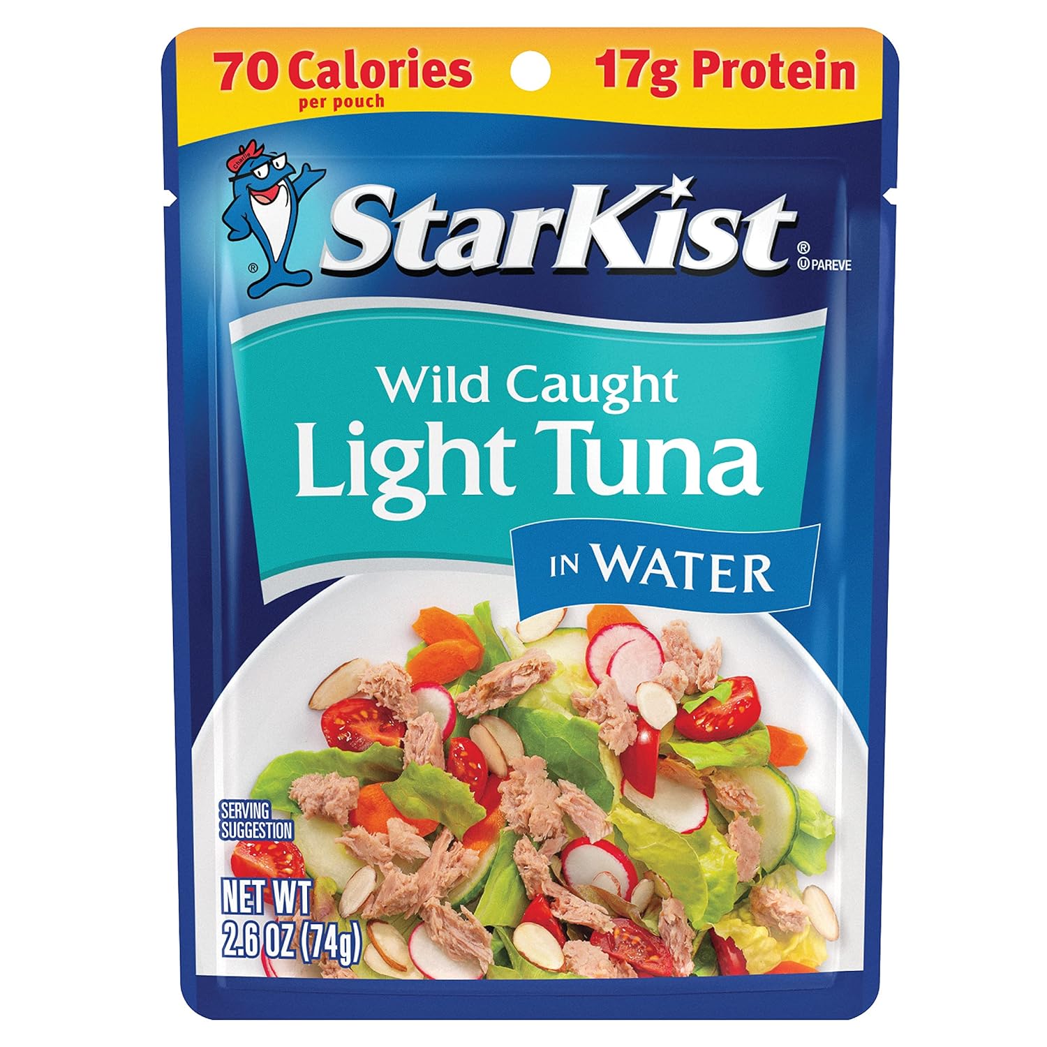 DELICIOUS, MILD FLAVOR: StarKist Chunk Light Tuna in Water is wild caught and dolphin safe. Each of our nutrient dense tuna packs contains 100% all-natural chunk light tuna that is perfect for quick snacks or meals on the go10EXCELLENT SOURCE OF PROTEIN: Our tuna is a natural source of protein and Omega 3s, plus it has 17g of protein, 70 calories per serving. It’s soy and gluten free and works well with Keto, Paleo, Mediterranean and Weight Watchers diet plans!10ADD VARIETY TO YOUR DIET: Tuna is a wholesome choice for a snack or meal that fits into an active lifestyle. StarKist tuna in water is a great and easy way to add seafood to your diet10FLAVOR FRESH POUCH: Our flavor fresh tuna pouch preserves the freshness of your favorite meal or snack, so it’s always delicious and ready when you are. There’s no can opener required or draining necessary – Just tear, eat and go!10BULK 24 PACK: Buy your tuna in bulk with the StarKist 24-Pack. These tuna pouches are easy to store and great to have handy for when hunger strikes – whether you’re on the go, at the office or at home10Whether you’re squeezing in lunch between meetings during a busy workday or want a quick, protein-packed and nutrient dense snack between soccer practice, school and other daily errands, StarKist Chunk Light Tuna in Water is the perfect choice! These 2.6 oz pouches contain wild caught, delicious tuna with a mild flavor. The 100% all-natural chunk light tuna packs are ideal for both quick snacks and as part of a larger meal. It’s soy and gluten free and works well with Keto, Paleo, Mediterranean and Weight Watchers diet plans! Our flavor fresh tuna to go pouch preserves the freshness of your favorite meal or snack, so it’s always delicious and ready when you are. There’s no can opener required or draining necessary – Just tear, eat and go! This packaged tuna is an excellent, natural source of protein, and Omega 3s , and it has 17g of protein and 70 calories per pouch. Plus, it’s a great, quick and easy way to add seafood to your diet! Tuna is a wholesome way to add variety to your meals. Easy to store, you can stock up with this 24-Pack, and keep these tuna singles in your office, pantry at home and even in your diaper bag or car! An industry innovator, StarKist was the first brand to introduce StarKist single-serve pouch products, which include Tuna, Salmon and Chicken Creations, and StarKist Selects E.V.O.O. As America’s favorite tuna*, StarKist represents a tradition of quality, consumer trust and a commitment to sustainability. *Nielsen Custom Scantrak Data xAOC Dollar Share Latest 52 Weeks