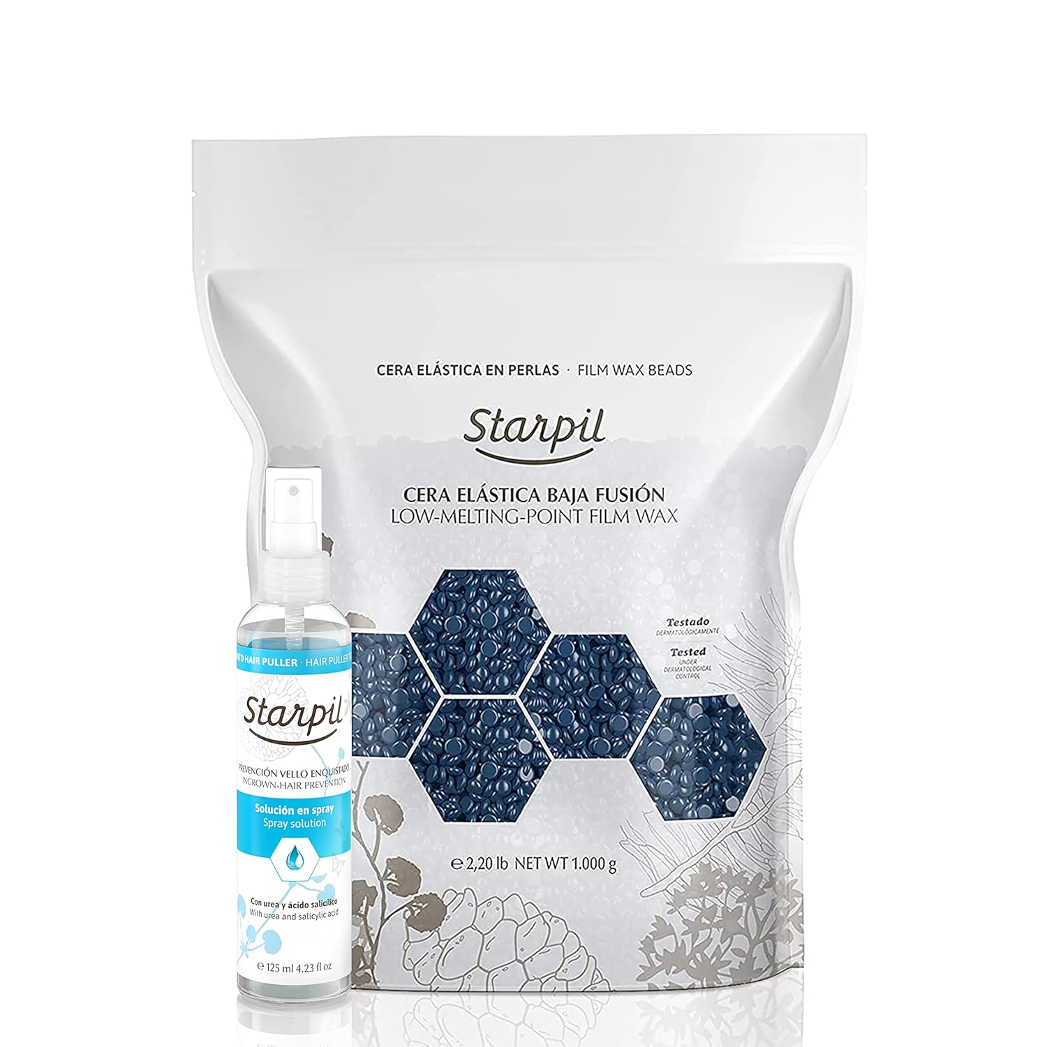 Starpil Hard Wax Beads Blue 1000G, Post Wax Ingrown Hair Spray 124 Ml