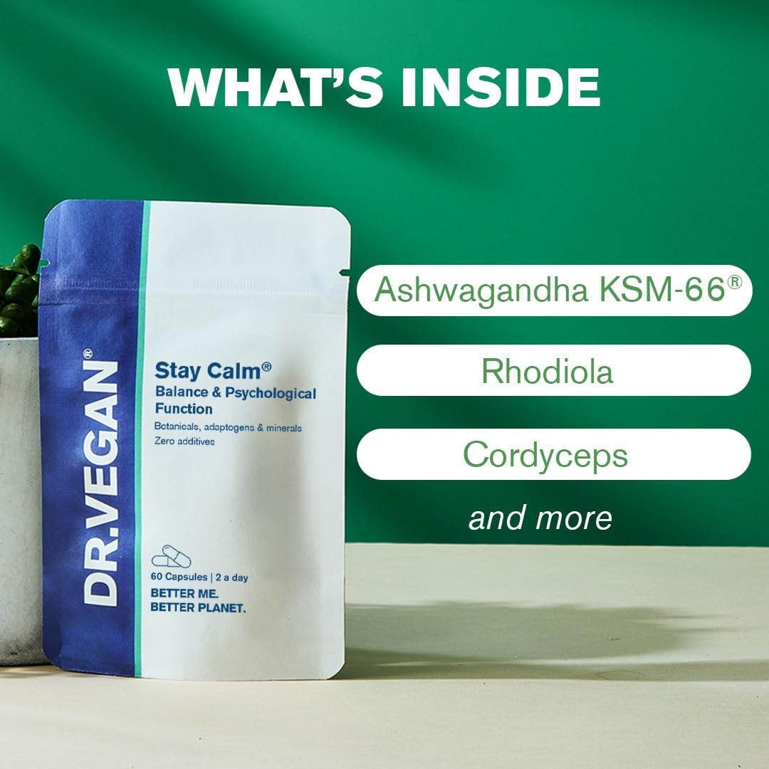 Stay Calm Supplement | Stress And Anxiety Relief | Ashwagandha Ksm 66, Magnesium, L-Theanine, Rhodiola, Schisandra And Cordyceps | 60 Vegan Capsules | Two-A-Day | Dr.Vegan