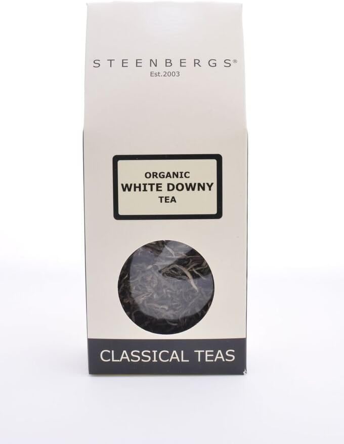 Product description Steenbergs Organic White Downy Tea comes from the Fujian province in china and is a loose leaf Chinese organic white tea. Organic white downy tea is hand picked tea and hand processed using orthodox tea methods to give very long twisted leaves many with silver tips and a beautiful white downy coating to the leaves. On cupping, White Downy Tea has a light yellow colour and has a fresh, sweet taste of newly cut herbs. A really beautiful tea for the afternoon or evening, but make sure your palate is clean, so you can savour the delicate beauty of its flavour profile. From Steenbergs the speciality loose leaf tea company based in rural North Yorkshire. Family run, set up in 2003. Ingredients organic white tea P.when('A').execute(function(A) { A.on('a:expander:toggle_description:toggle:collapse', function(data) { window.scroll(0, data.expander.$expander[0].offsetTop-100); }); }); Directions Into a warmed teapot, put in 1 teaspoon of White Downy Tea per cup. Bring fresh water to boil & pour over White Downy Tea. Steep for 3 – 5 minutes. Do not add milk and ideally no sugar. Safety Warning May contain allergens. Not recommended for children or pregnant women. See more,Steenbergs Organic White Downy Tea 60g,Loose Leaf,Chinese,Steenbergs, the UK loose leaf tea and herbal tea company, North Yorkshire,Steenbergs offers flat rate posting so add with any of their other products for the same postage