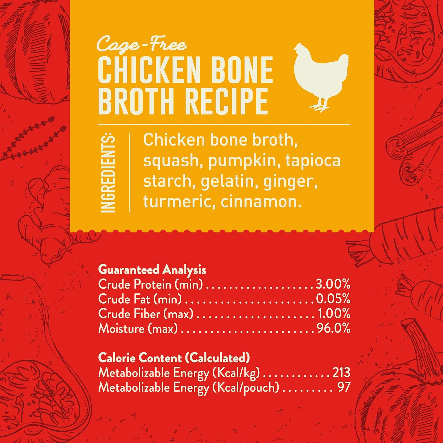 Our Bountiful Bone Broth Is Slowly Simmered In Small Batches With Real Cage-Free Chicken Making It Rich In Collagen And Other Valuable Nutrients. With A Convenient, Reclosable Pouch — It’S Easy To Add Taste And Health While You Hydrate Your Dog’S Favorite Meal!