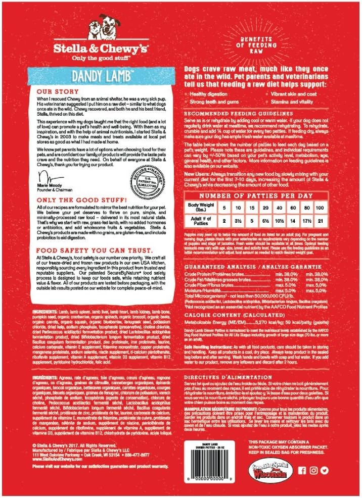 Stella & Chewy'S Freeze Dried Raw Dinner Patties – Grain Free Dog Food, Protein Rich Dandy Lamb Recipe – 25 Oz Bag