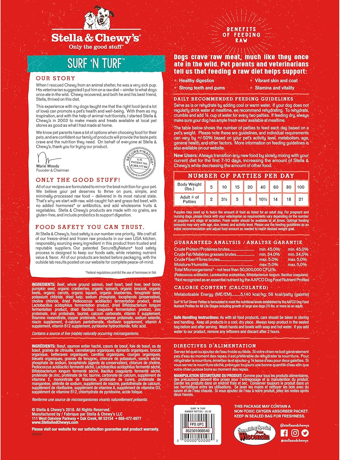 Stella & Chewy'S Freeze Dried Raw Dinner Patties – Grain Free Dog Food, Protein Rich Surf ‘N Turf Salmon & Beef Recipe – 25 Oz Bag