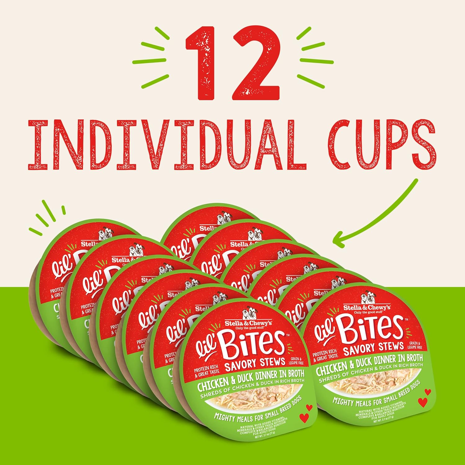 Stella & Chewy'S Lil Bites Savory Stews For Small Breeds Chicken & Duck Dinner In Broth, 2.7 Ounce (Pack Of 12)