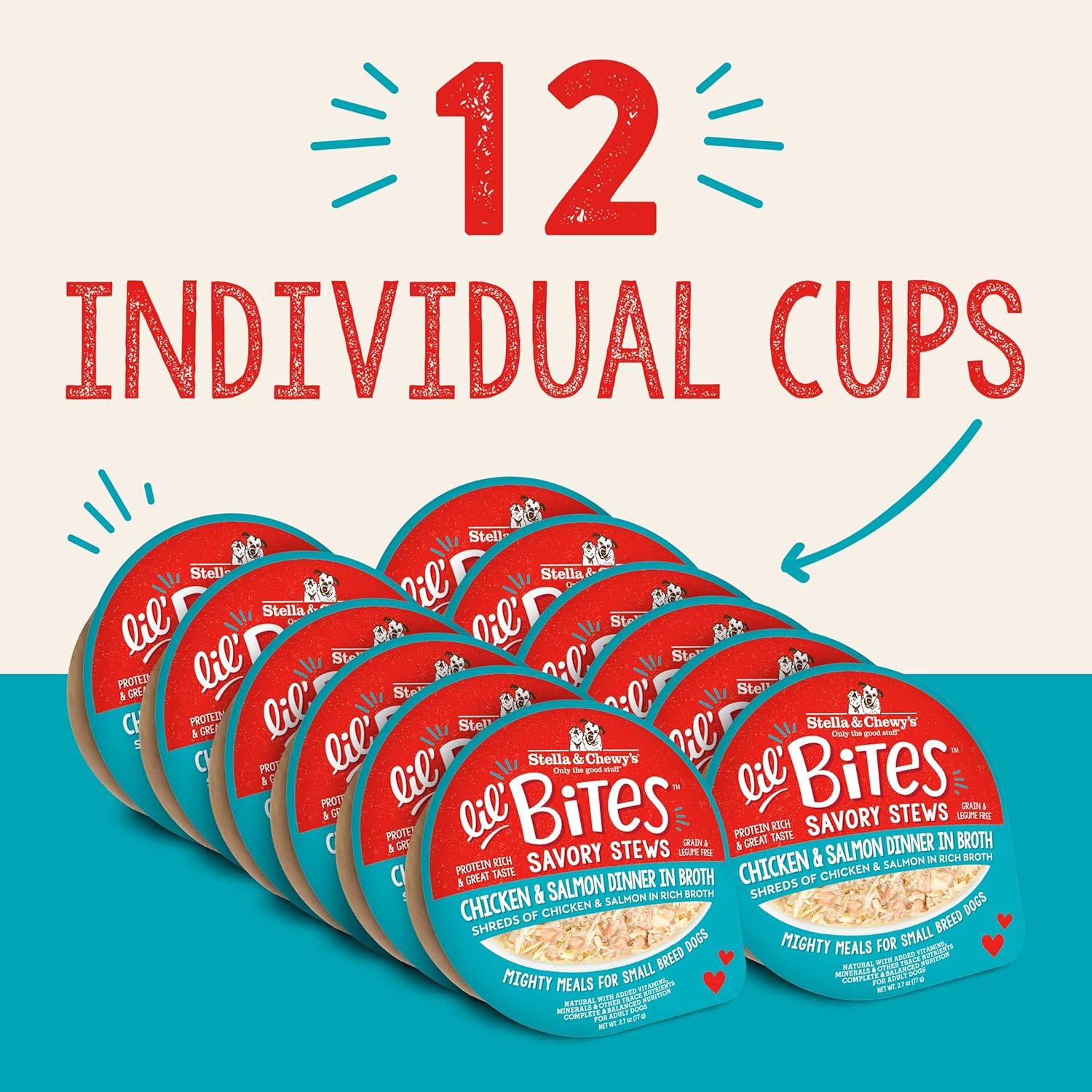 Stella & Chewy'S Lil Bites Savory Stews For Small Breeds Chicken & Salmon Dinner In Broth, 2.7 Oz. Cups (Pack Of 12)