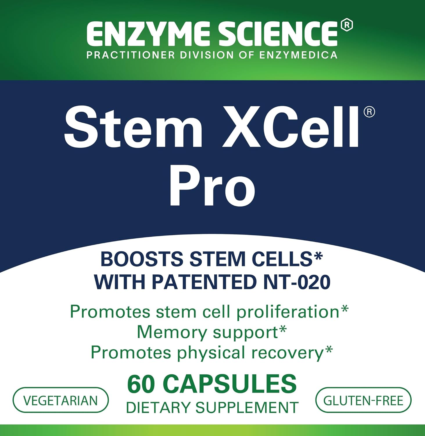 About this item STEM CELL FUNCTION. Stem XCell Pro is formulated to support the health, proliferation, and maintenance of stem cells, also often known as master cells that maintain and repair tissue.* It contains the patented, University developed NT-020 blend. AIDS ADULT STEM CELLS. The patented NT-020 blend was developed by leading University scientists who discovered that blueberry and green tea extracts, L-carnosine, and vitamin D3, in combination, demonstrated a synergy in increasing the number of adult stem cells.* FORMULATED WITH ENZYMES. This stem cell supplement is formulated with enzymes for stem cells function to aid cellular regeneration and cognitive function.* Enzymes are essential for many vital processes in the body, such as food digestion and other metabolic functions.* KEY INGREDIENTS. Stem XCell Pro ingredients include the proprietary blend NT-020, botanical enhance enzymes, an antioxidant blend, and vitamin D3. DEDICATED TO QUALITY. Enzyme Science represents exceptional solutions for digestive health. We offer unique enzyme blends designed to provide optimal solutions for digestive health and wellness.* See more product details,STEM CELL FUNCTION. Stem XCell Pro is formulated to support the health, proliferation, and maintenance of stem cells, also often known as master cells that maintain and repair tissue.* It contains the patented, University developed NT-020 blend,AIDS ADULT STEM CELLS. The patented NT-020 blend was developed by leading University scientists who discovered that blueberry and green tea extracts, L-carnosine, and vitamin D3, in combination, demonstrated a synergy in increasing the number of adult stem cells,FORMULATED WITH ENZYMES. This stem cell supplement is formulated with enzymes for stem cells function to aid cellular regeneration and cognitive function.* Enzymes are essential for many vital processes in the body, such as food digestion and other metabolic functions,KEY INGREDIENTS. Stem XCell Pro ingredients include the proprietary blend NT-020, botanical enhance enzymes, an antioxidant blend, and vitamin D3,DEDICATED TO QUALITY. Enzyme Science represents exceptional solutions for digestive health. We offer unique enzyme blends designed to provide optimal solutions for digestive health and wellness