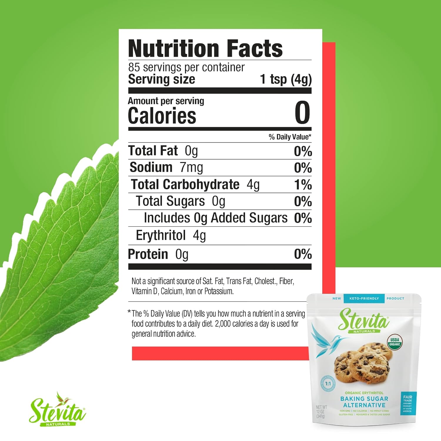 Stevita Organic Erythritol Bake-It-Better Pouch - 12 Oz - Baking Sugar Alternative With Stevia & Erythritol, No Calories - Usda Organic, Non-Gmo, Vegan, Keto, Paleo, Gluten Free