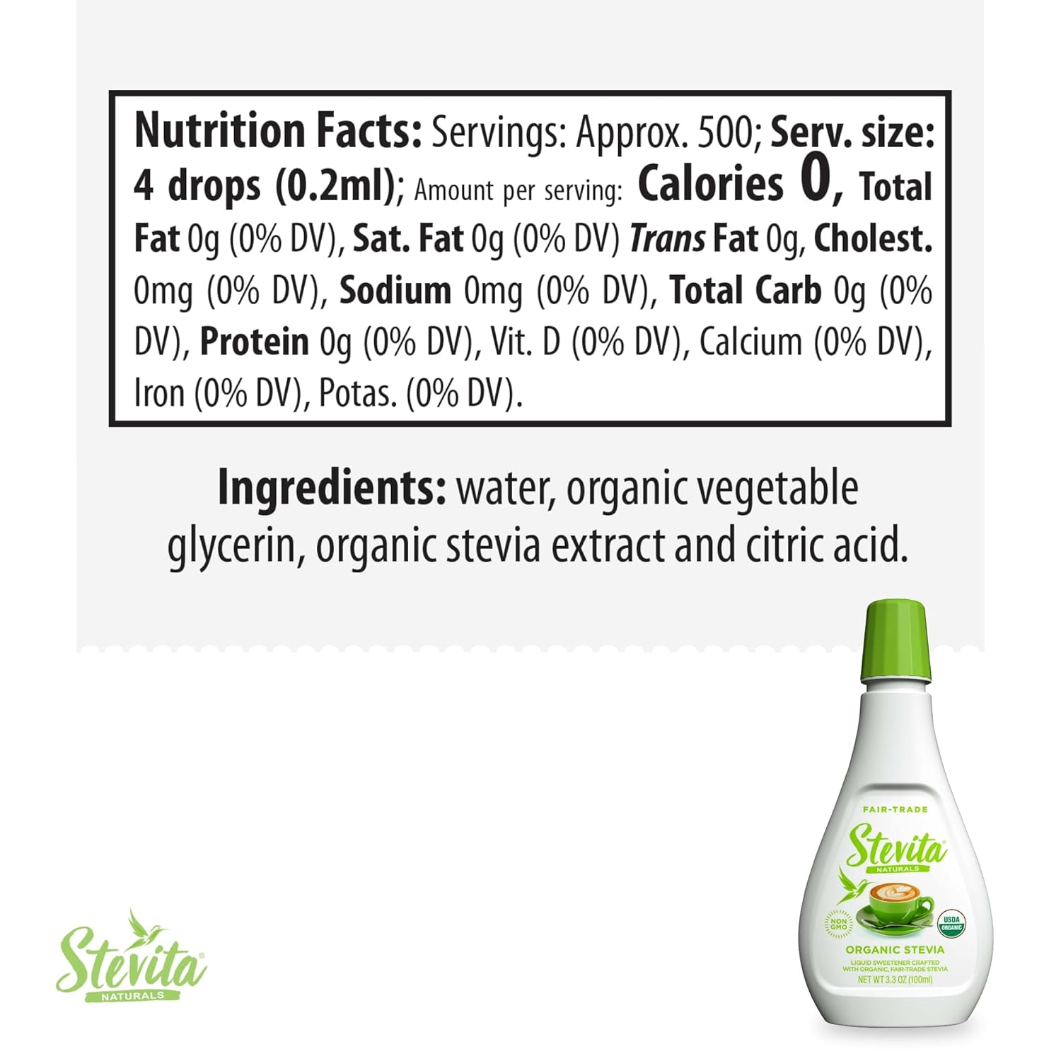 Stevita Organic Liquid Stevia - 3.3 Oz, Pack Of 3 - All-Natural Sweetener, Zero Calories - Usda Organic, Non-Gmo, Vegan, Kosher, Keto, Paleo, Gluten Free - 1500 Total Servings
