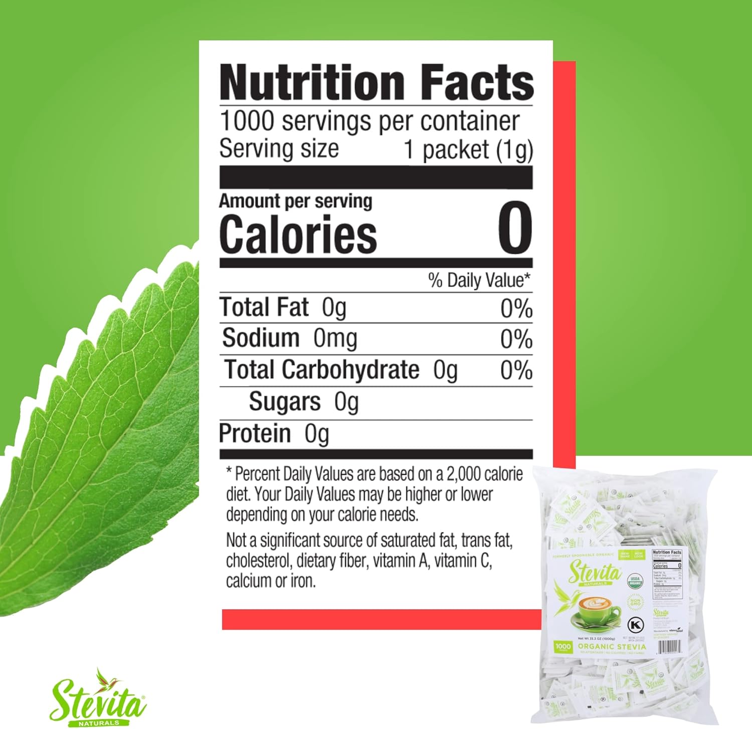 Stevita Organic Stevia - 1000 Packets - Stevia & Erythritol All-Natural Sweetener, No Calories - Usda Organic, Non-Gmo, Vegan, Keto, Paleo, Gluten Free - 1000 Servings