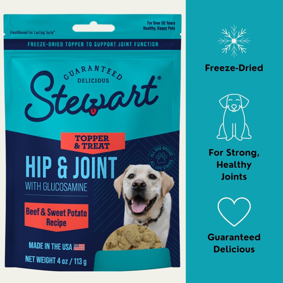 Stewart Freeze Dried Dog Food Topper, Hip And Joint, Beef And Sweet Potato Recipe, 4 Ounce Pouch, Glucosamine For Healthy Joints