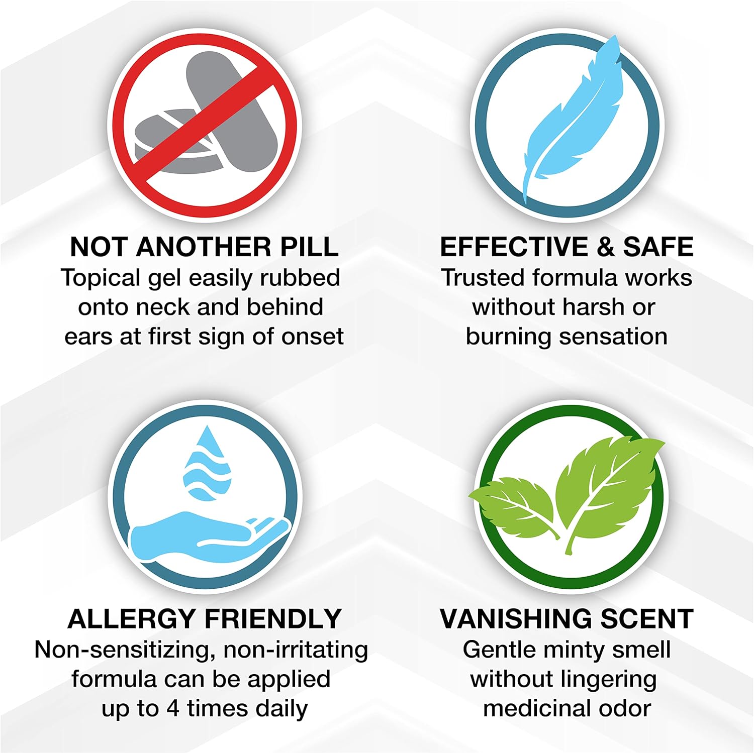 - Apply a small amount of gel directly to the temples, forehead, and back of the neck at the first sign of migraine.