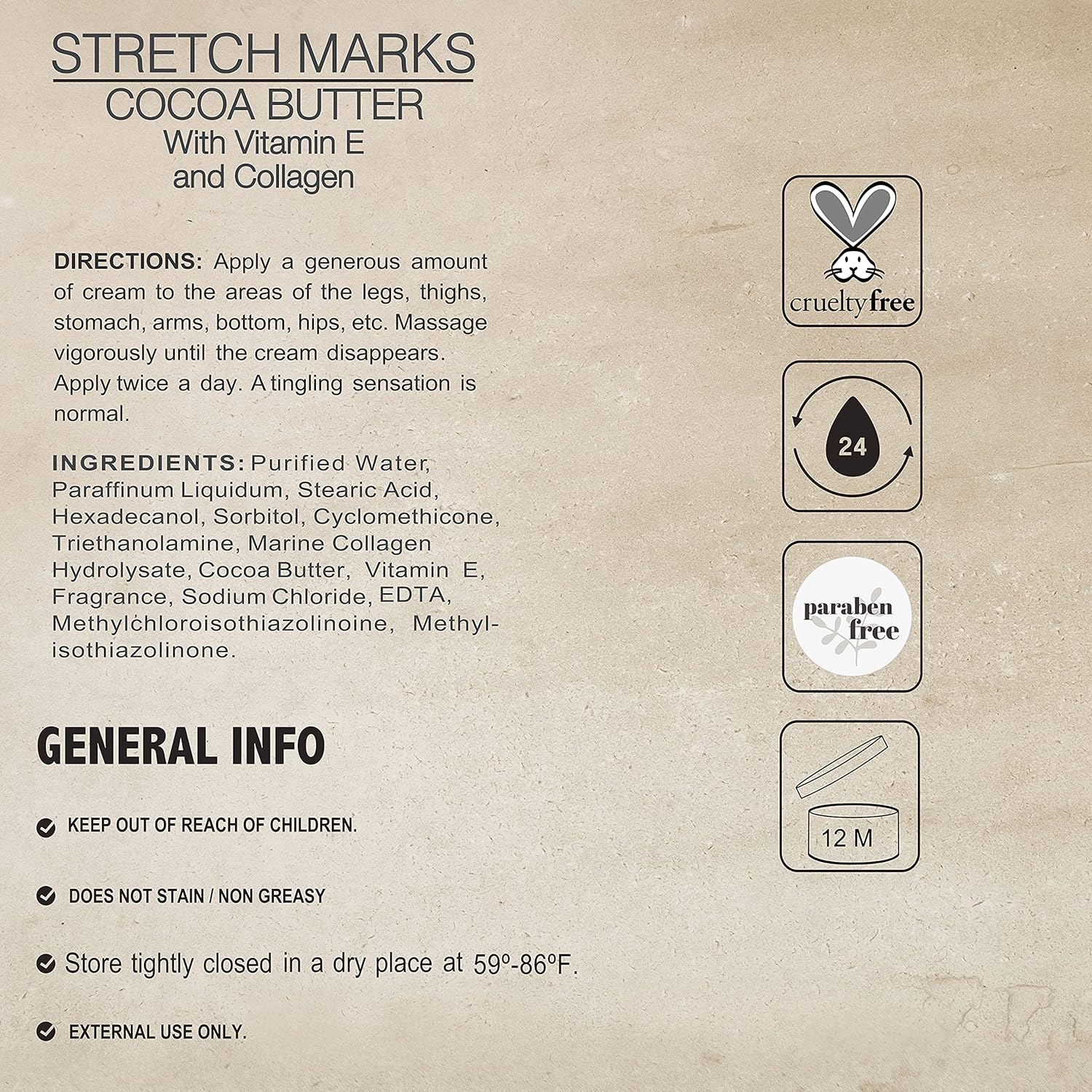 Strech Marks Cocoa Butter with Vitamin E and Collagen - Minimizes Apperence of Stretch Marks - Moisturizes skin - 16 oz