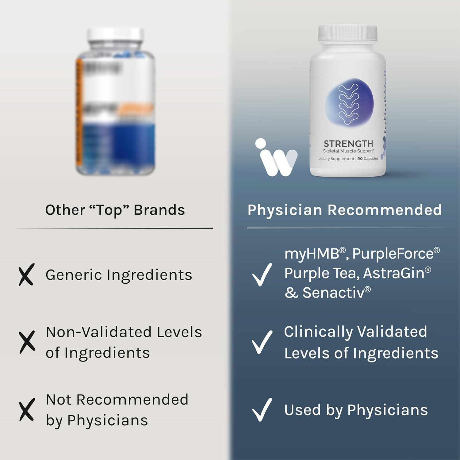 About this item Support Muscle Mass & Tissue Quality - Clinically-backed blend supports muscle mass, recovery, and strength. Promotes protein synthesis and lean muscle quality to improve endurance, stamina, and body composition with consistent use. Why Muscle Health Matters - Healthy muscle mass is key for mobility and longevity. This formula counters age-related decline and GLP-1-induced loss with ingredients clinically shown to support optimal muscle function and quality. Why HMB - HMB supplements have gained popularity because of their ability to support muscle preservation, protein synthesis, recovery, and preserve lean muscle mass, especially during intense exercise. Bioactive Synergy - These muscle recovery supplements tap SenactivĀ® to help support mitochondrial function for healthy recovery, while AstraGinĀ® boosts nutrient absorption by enhancing intestinal transport and barrier integrity. Next Generation Performance & Recovery - At InfiniWell, we offer new tools for longevity and develop all of our formulas in partnership with top physicians. Today, over 25,000 healthcare professionals proudly recommend InfiniWell to their patients. See more product details,Support Muscle Mass & Tissue Quality - Clinically-backed blend supports muscle mass, recovery, and strength. Promotes protein synthesis and lean muscle quality to improve endurance, stamina, and body composition with consistent use,Why Muscle Health Matters - Healthy muscle mass is key for mobility and longevity. This formula counters age-related decline and GLP-1-induced loss with ingredients clinically shown to support optimal muscle function and quality,Why HMB - HMB supplements have gained popularity because of their ability to support muscle preservation, protein synthesis, recovery, and preserve lean muscle mass, especially during intense exercise,Bioactive Synergy - These muscle recovery supplements tap SenactivĀ® to help support mitochondrial function for healthy recovery, while AstraGinĀ® boosts nutrient absorption by enhancing intestinal transport and barrier integrity,Next Generation Performance & Recovery - At InfiniWell, we offer new tools for longevity and develop all of our formulas in partnership with top physicians. Today, over 25,000 healthcare professionals proudly recommend InfiniWell to their patients