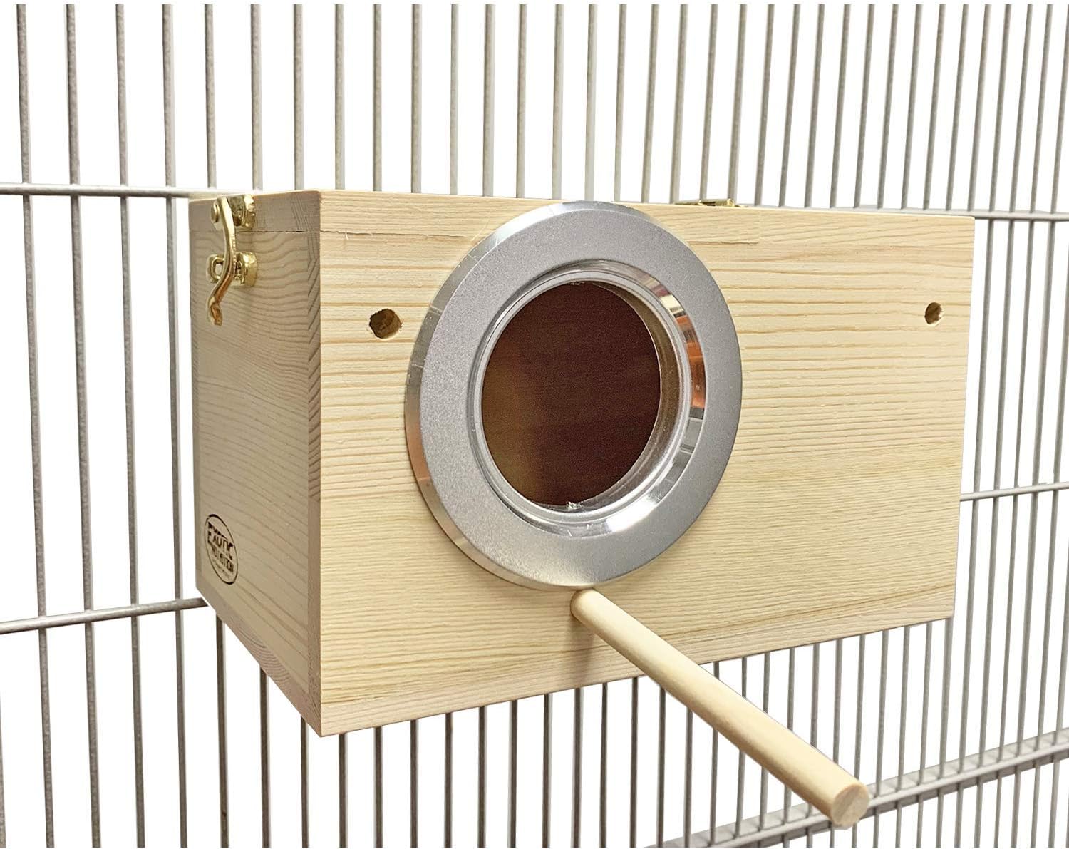 Sturdy Nest Box (S) - Cage Attachment, Hinged Lid, Perching Ledge - For Sugar Glider, Squirrel, Rat, Finch, Parakeet, Lovebird, Parrotlet, Lovebird, Canary, Cockatiel, Other Birds & Small Pets